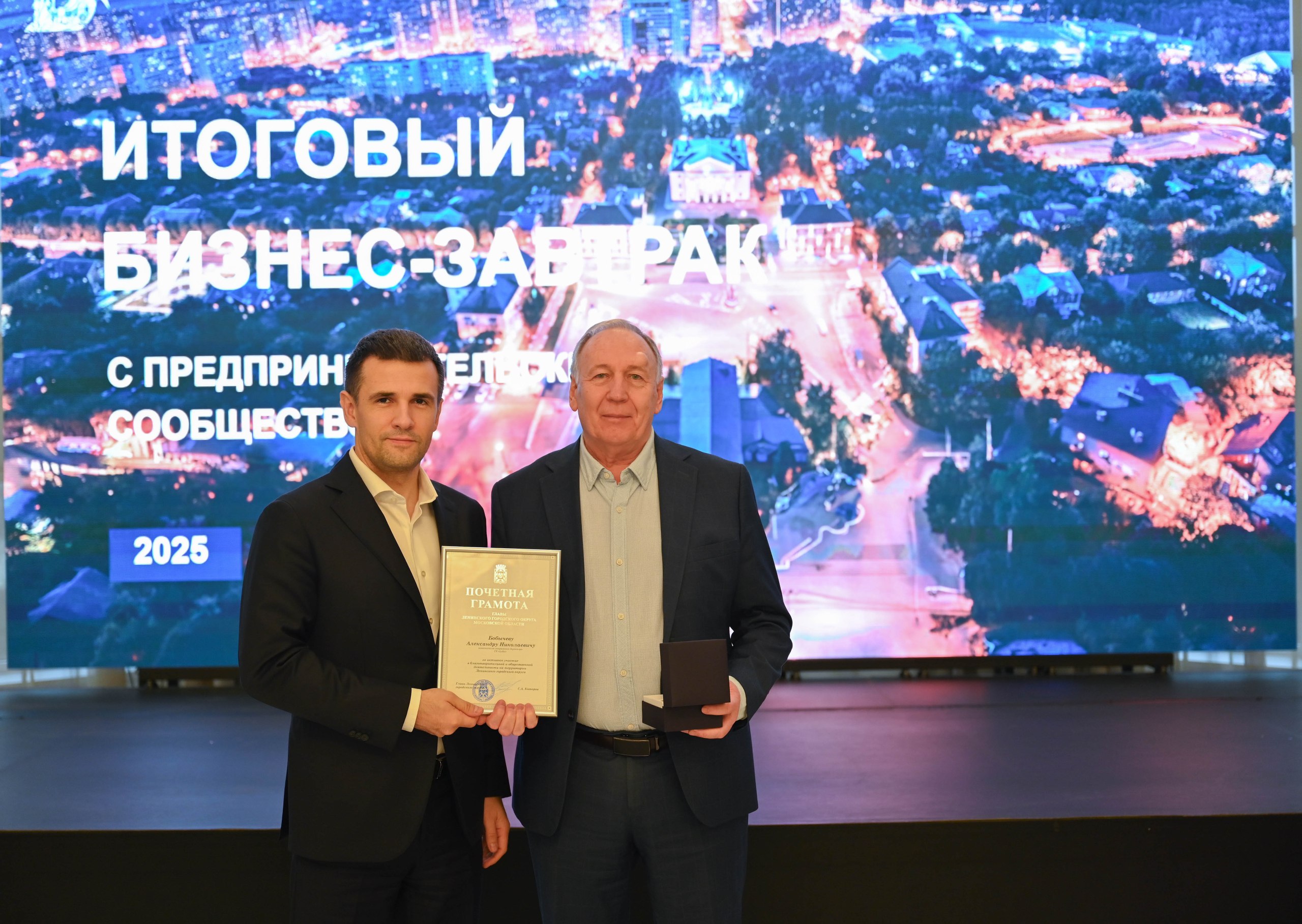 Глава Ленинского городского округа Станислав Каторов совместно с заместителем министра инвестиций, промышленности и науки Московской области, участником программы «Время героев», председателем Ассоциации ветеранов СВО Кириллом Лосунчуковым провели итоговую встречу с предпринимательским сообществом муниципалитета.