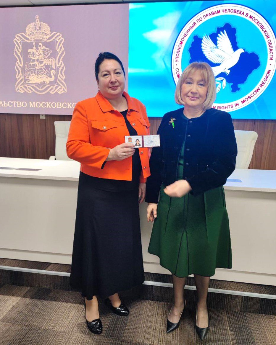 Подмосковный омбудсмен Ирина Фаевская вручила удостоверения своим новым помощникам в муниципальных образованиях на общественных началах. Одна из них — представитель нашего городского округа Анна Луференко.