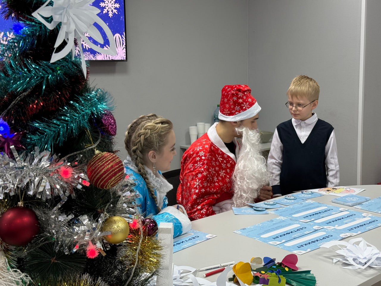Ребята создавали своими руками ёлочные игрушки, а в качестве главных помощников выступили Дед Мороз и Снегурочка.