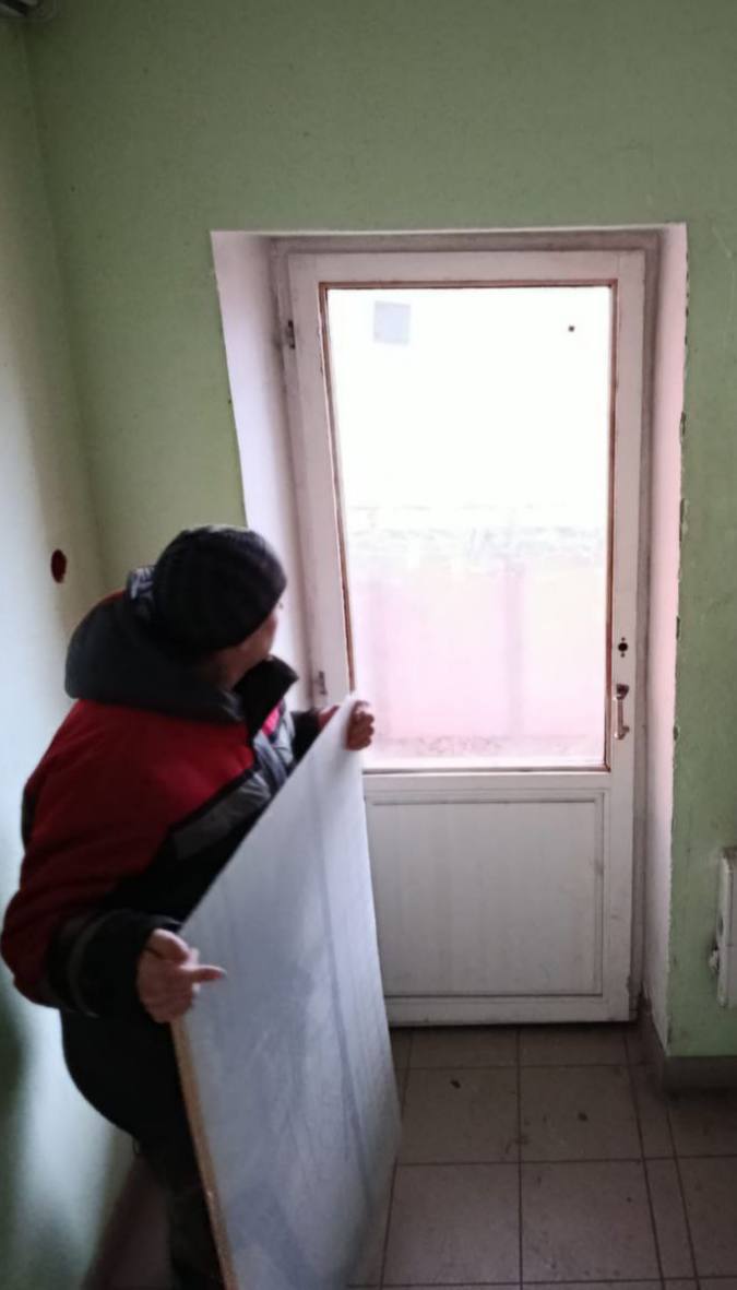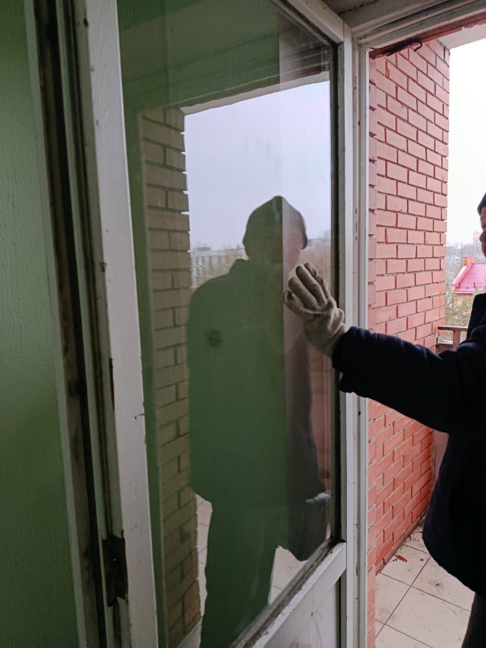 Наши рабочие провели работы по остеклению пожарной лестницы