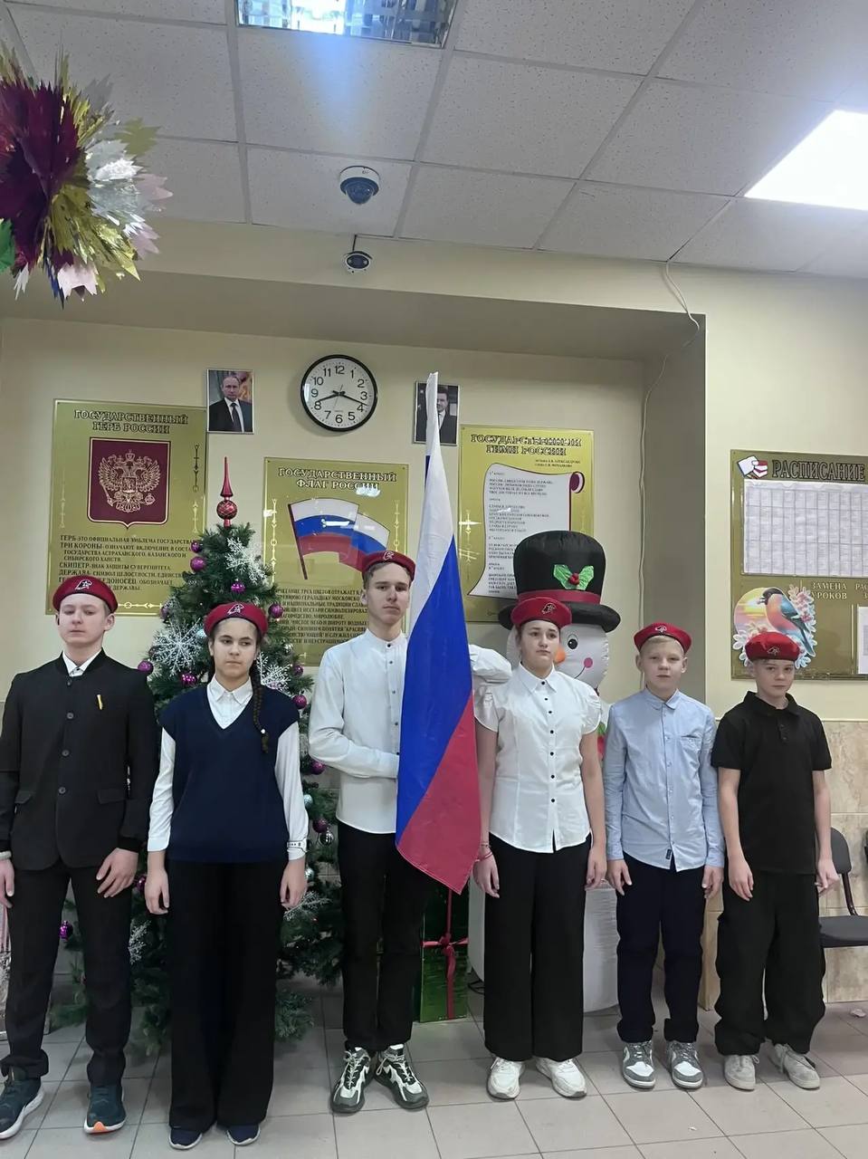 Новая неделя в лицее началась с традиционного выноса флага отрядом Юнармии «Комета» и исполнения гимна Российской Федерации.