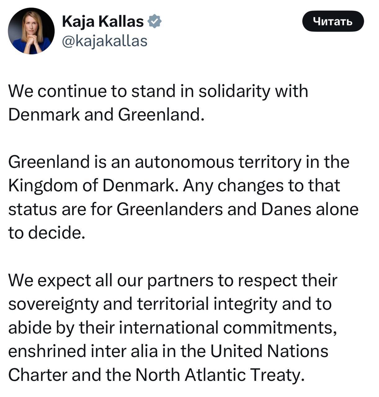 Мы продолжаем выражать солидарность с Данией и Гренландией.