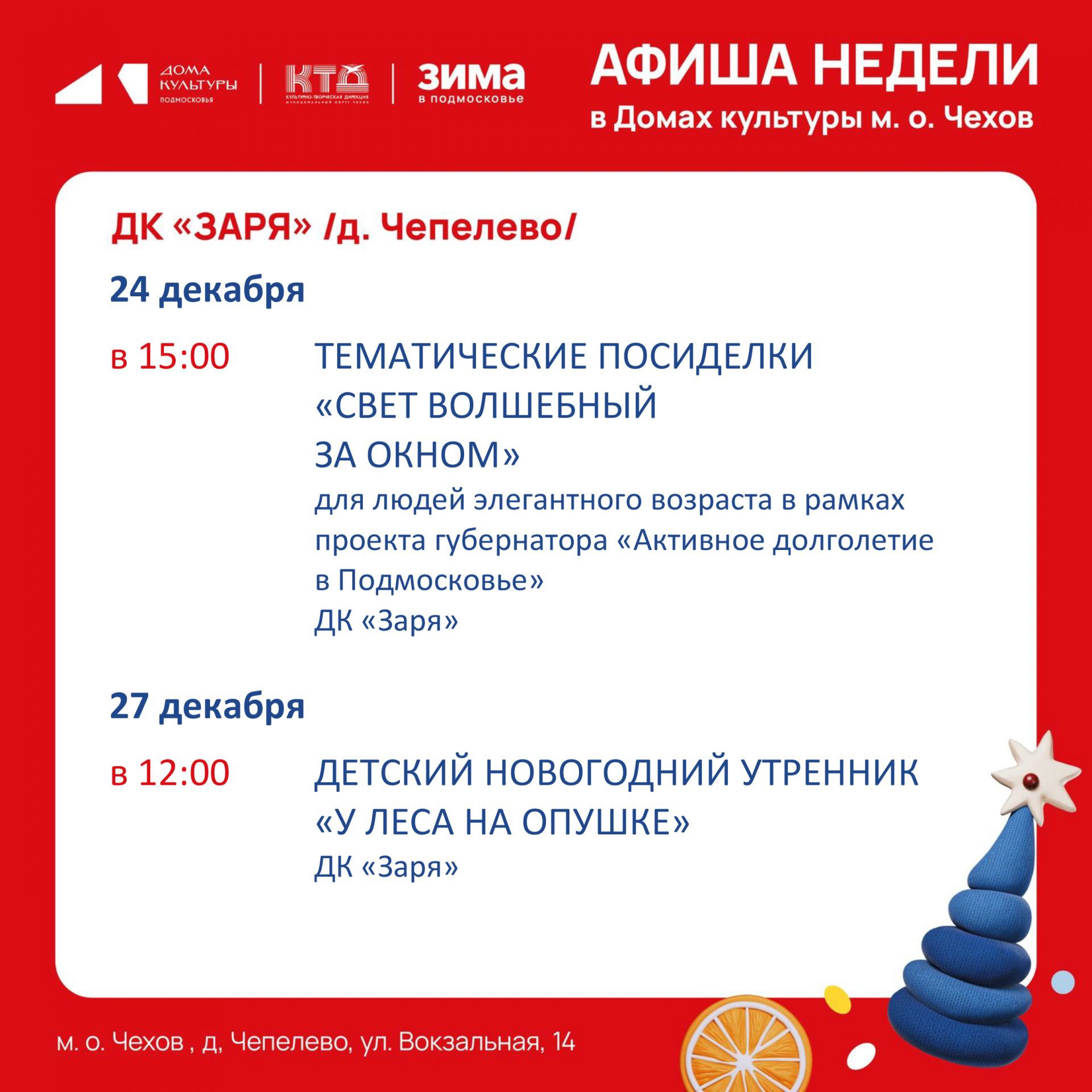 Анонс мероприятий на эту неделю в муниципальном округе Чехов
