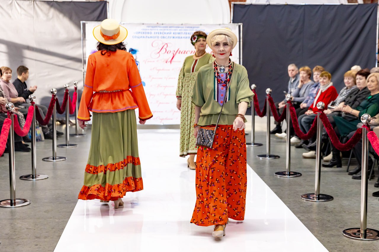 Модели серебряного возраста проектов «Возраст в моде» и «Элегантность» представили на подиуме уже полюбившиеся многим коллекции одежды: «Дулёвские самоцветы», «Просторы России», «Этно-мода» и другие.