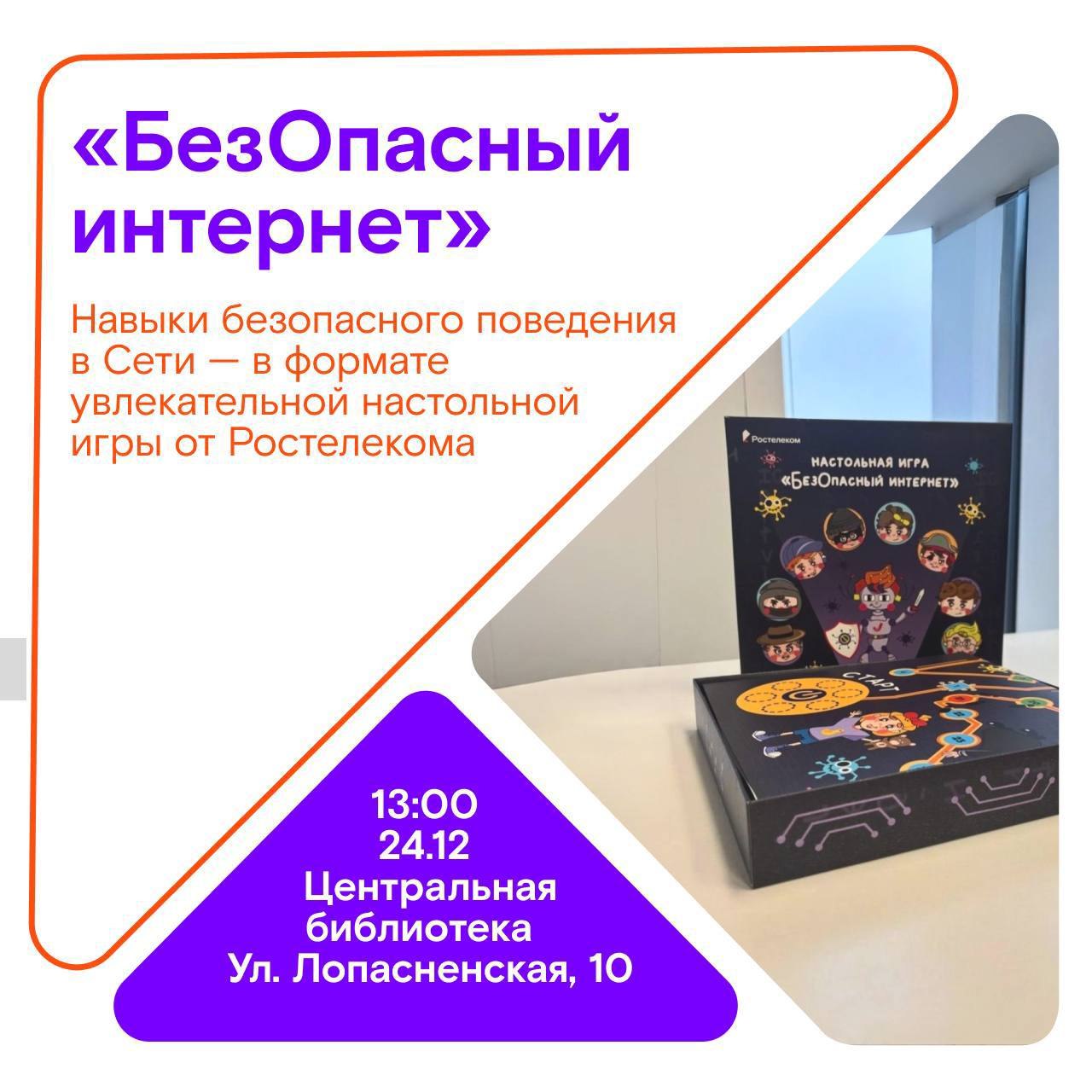 Захватывающий турнир по настольной игре «БезОпасный Интернет» от Ростелекома пройдет в Центральной библиотеке 24 декабря.