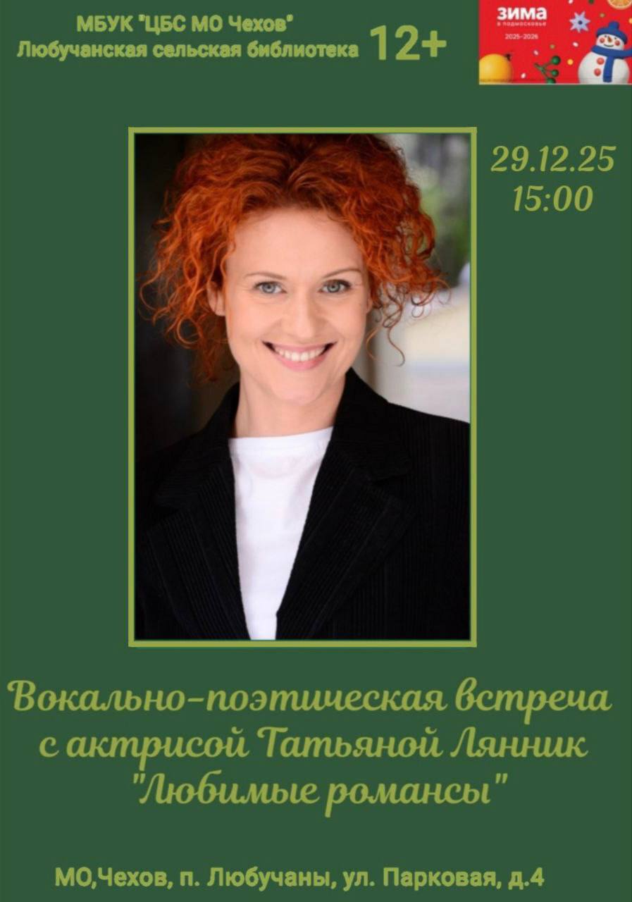Вокально-поэтическая встреча с актрисой Татьяной Лянник 29.12.25 в 15:00