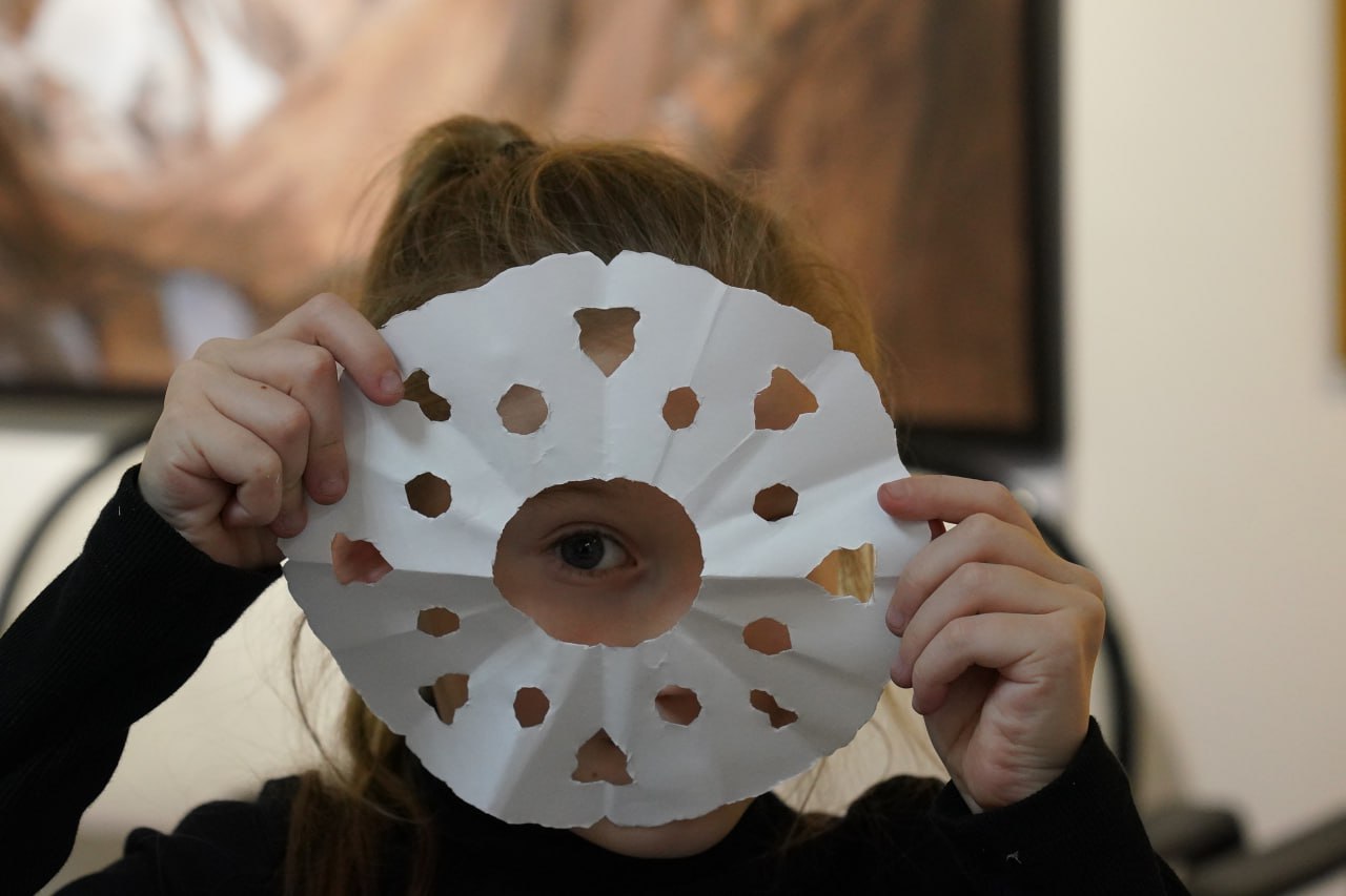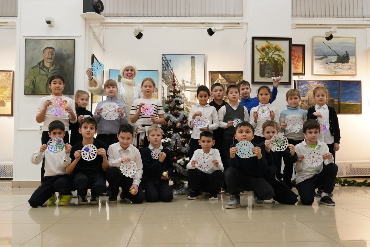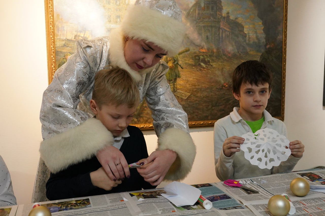 Маленьких реутовчан поприветствовала Снегурочка, которая вручила им небольшие подарки от самого Деда Мороза, – праздничные шарики на ёлку. Затем для школьников провели мастер-класс по созданию снежинок из бумаги, клея и блёсток. К интересному занятию присоединились и педагоги ребят.