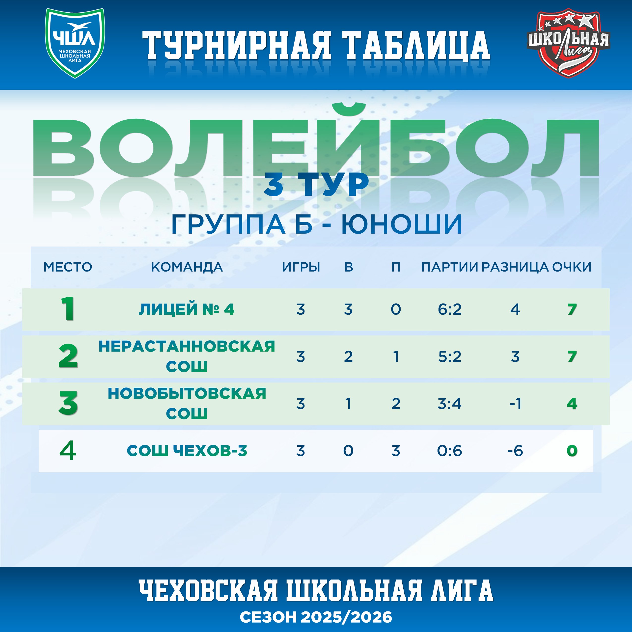 @schoolligarf #ЧеховскаяШкольнаяЛига #ЧШЛ #волейбол #турнирнаятаблица