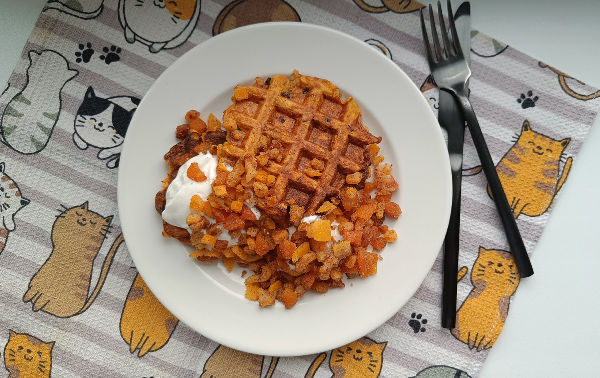 Эти замечательные вафли прекрасно сочетаются с различными топпингами — от йогурта до фруктовых пюре. Попробуйте их с тыквенным топпингом, который еще больше подчеркивает их сладость и делает десерт восхитительным!