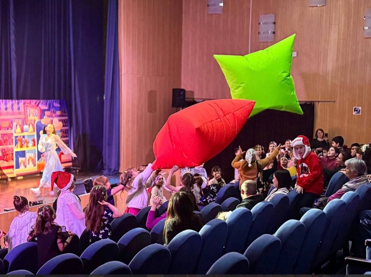 В зале ДК развернулась сказочная история, в которой приняли участие юные зрители. С наступающим праздником ребят и их родителей поздравили депутат округа Галина Романова и участник СВО Андрей Опрышко.
