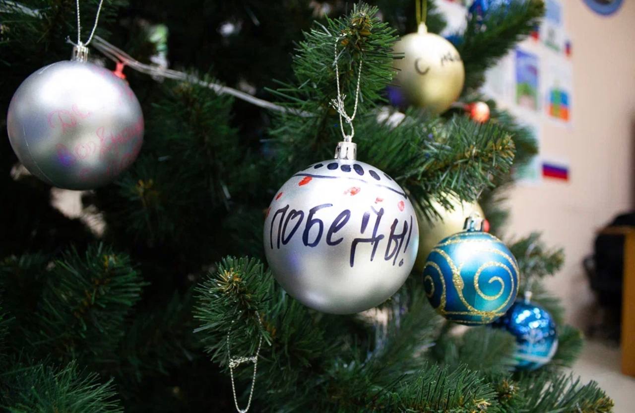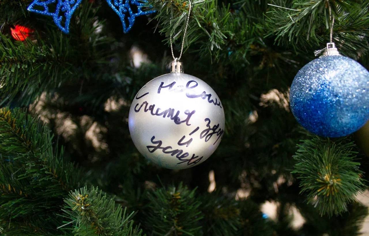 Ребята написали на новогодних шариках трогательные пожелания бойцам на передовую. Малыши старательно выводили каждую буковку своего послания.