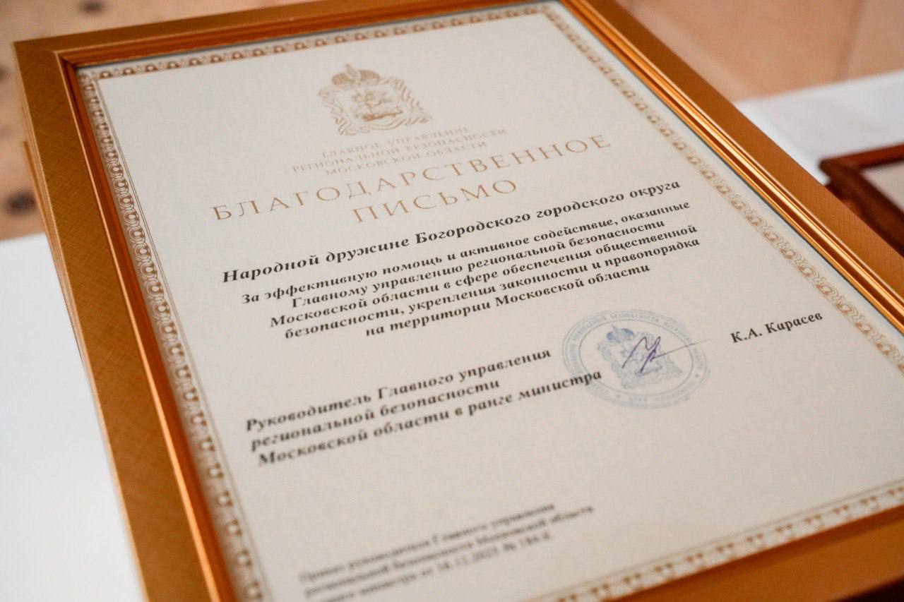 Благодарственным письмом Главного управления региональной безопасности Московской области вручили Михаилу Пичугину.