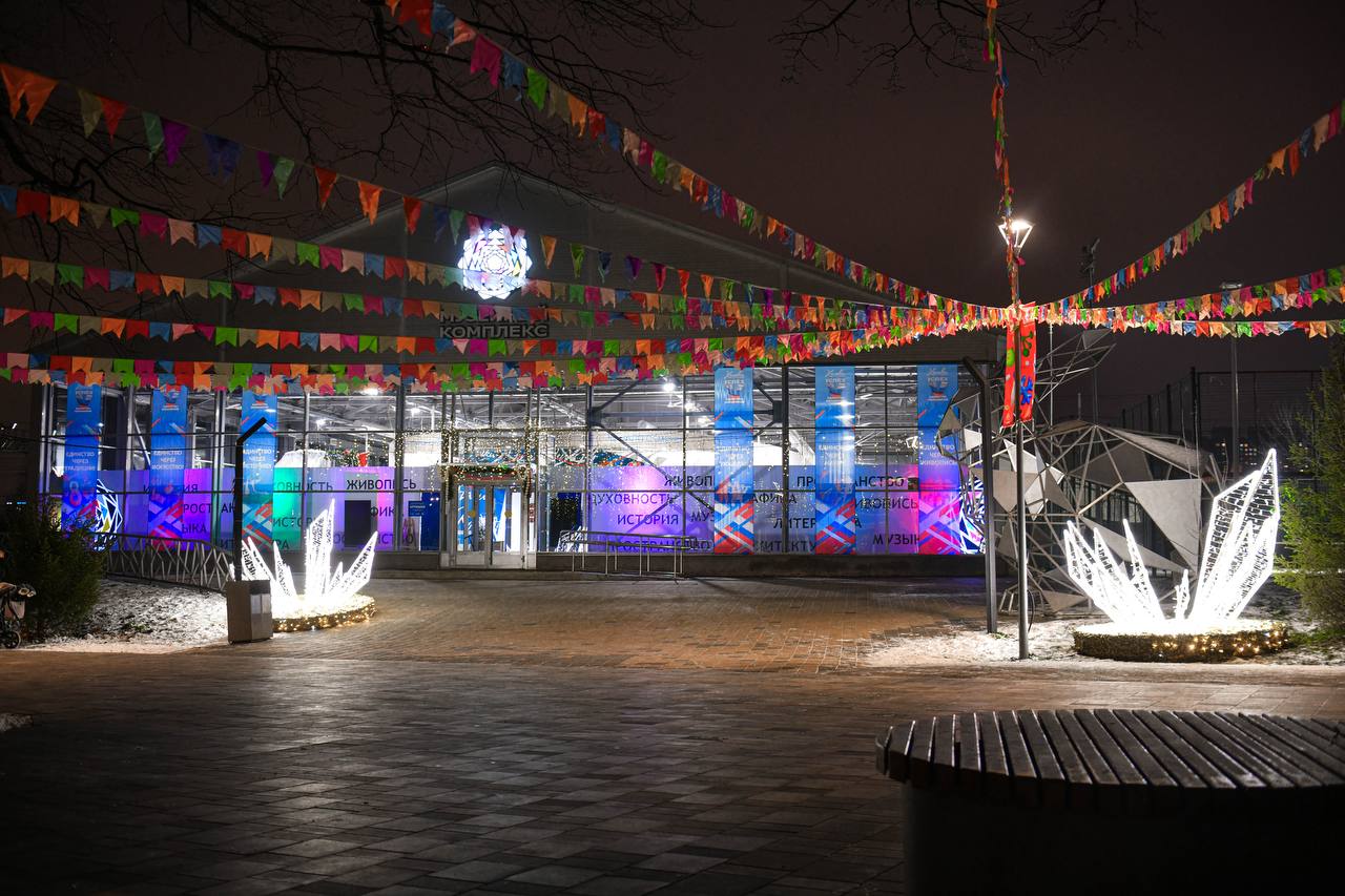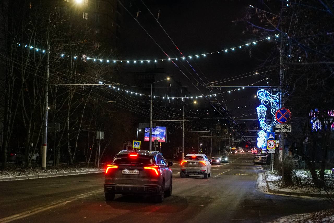 Яркая иллюминация и символы Нового года также украсили фасады многоквартирных домов и городских предприятий, дворы и спортивные площадки. Вдоль городских дорог разместили более 150 зимних мотивов: водителей встречают светящиеся снежинки, фонарики и фигуры хоккеистов. Украшения появились на социальных, спортивных, культурных и образовательных учреждениях округа.