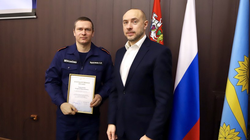 Накануне профессионального праздника (27 декабря) глава округа Константин Михальков поблагодарил сотрудников аварийноспасательной службы - МКУ «СолнСпас».