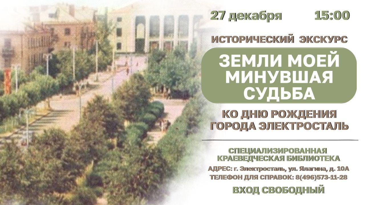 27 декабря в Краеведческой библиотеке состоится исторический экскурс в прошлое Электростали, посвящённый дню рождения города.