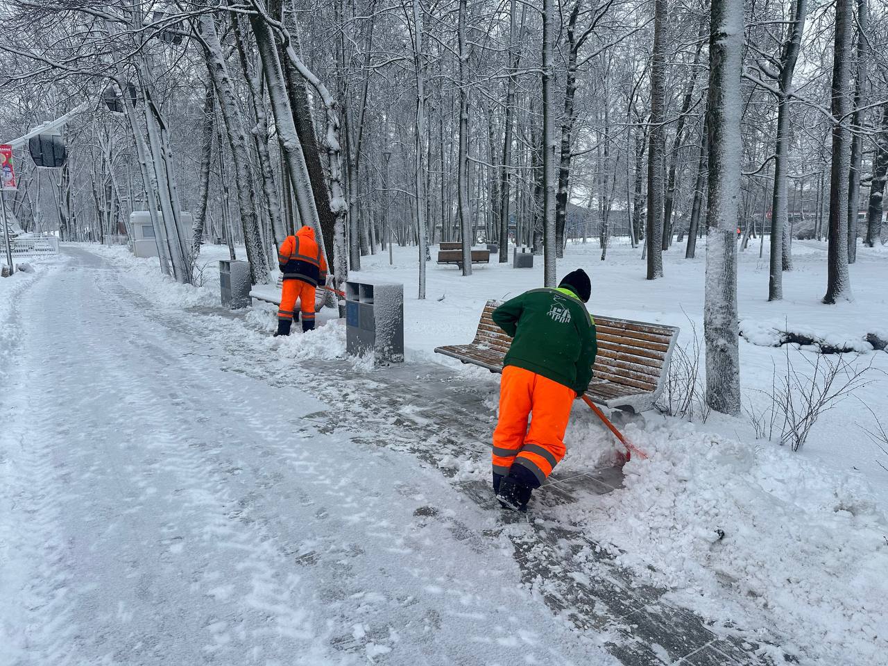 Коммунальные службы города работают в усиленном режиме и с самого утра устраняют последствия снегопада. Накануне непогоды территории обработали пескосоляной смесью, чтобы снизить риск гололёда.