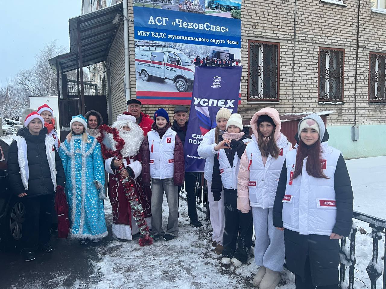 Юные активисты «Движение первых» поздравили коллектив МКУ ЕДДС МО Чехов с наступающими праздниками.