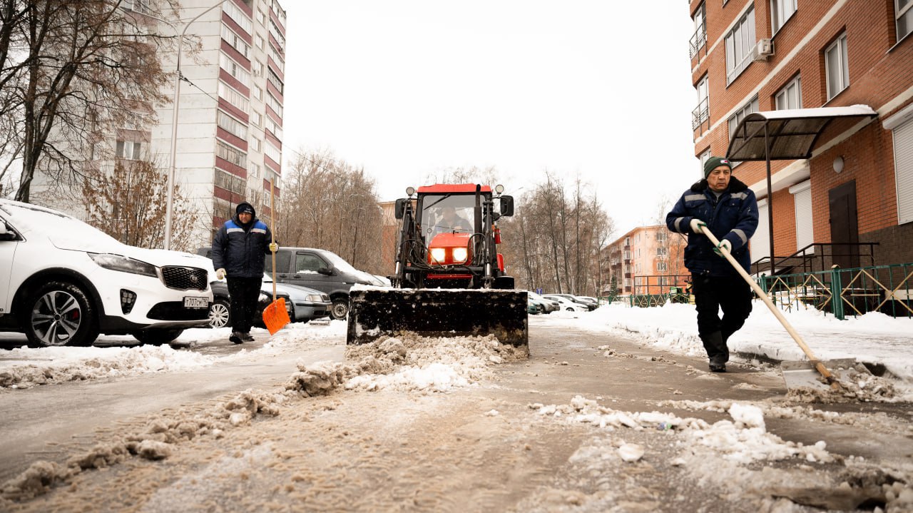 Около 50 единиц техники и 100 дорожных рабочих ликвидируют последствия снегопада в Люберцах