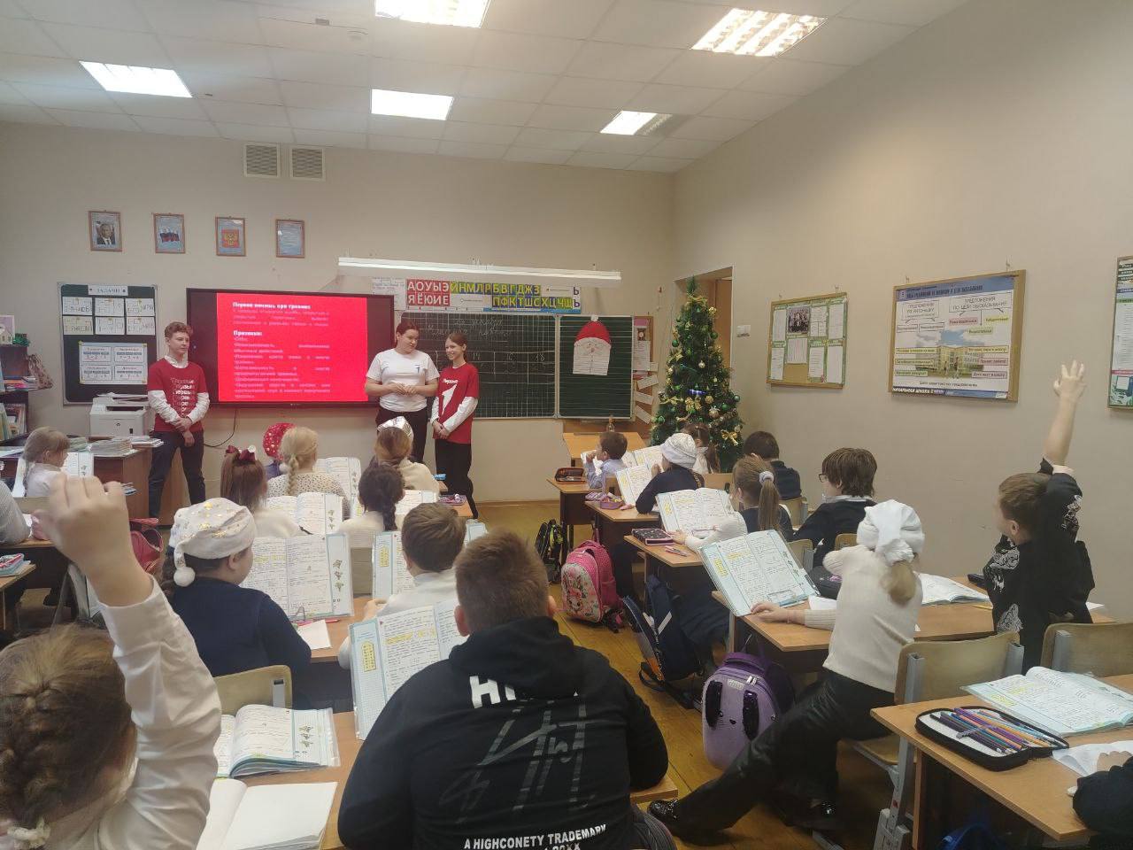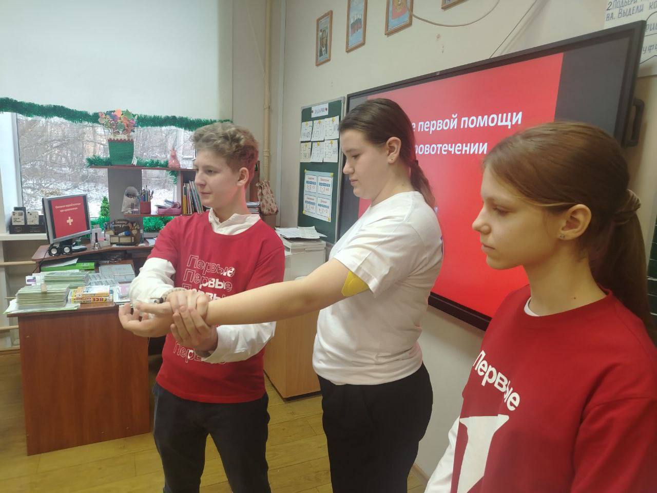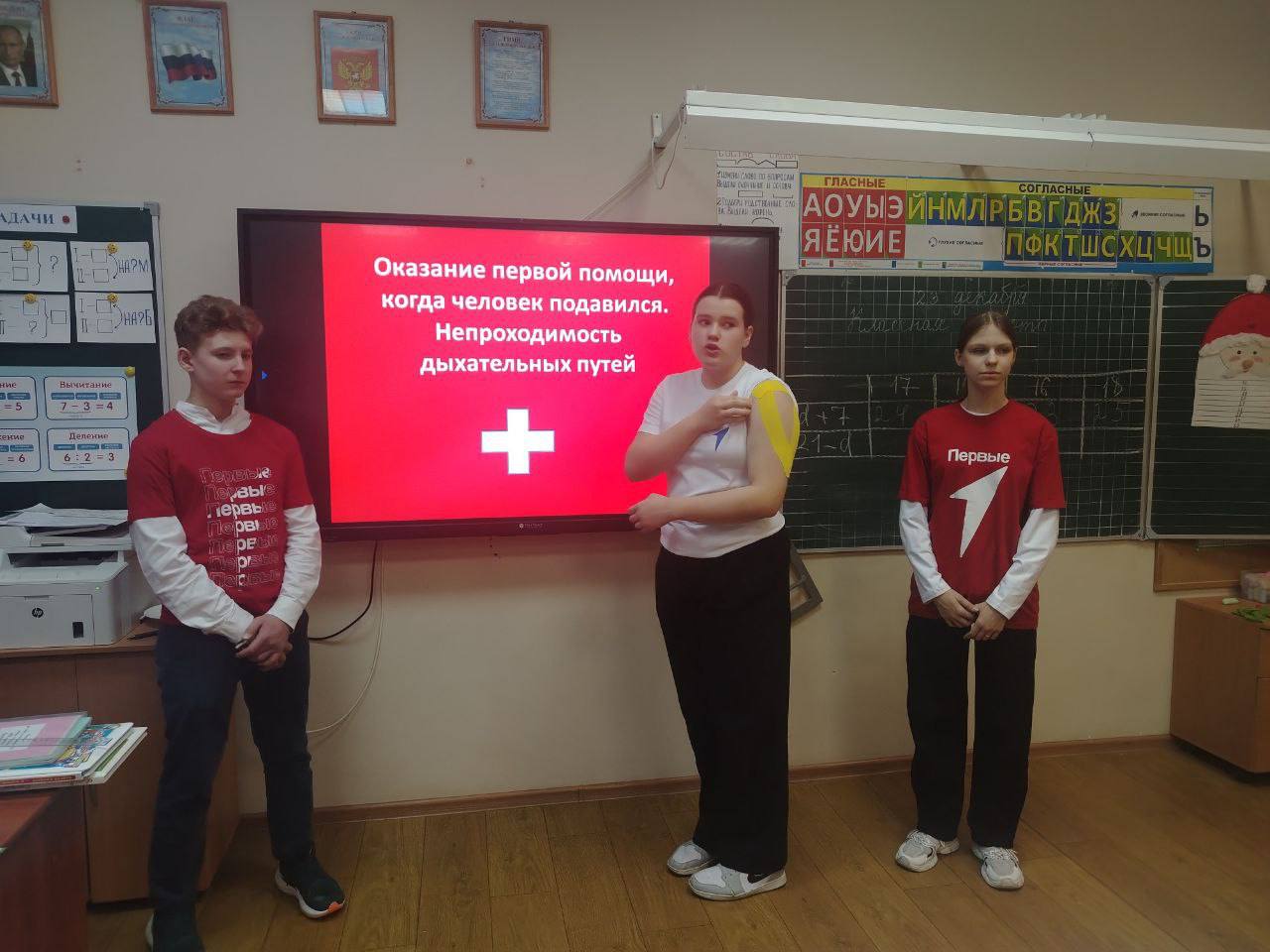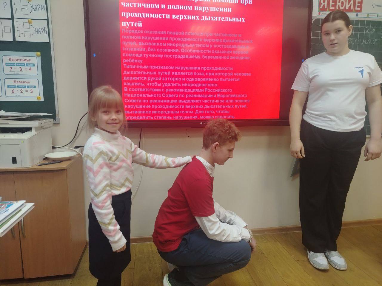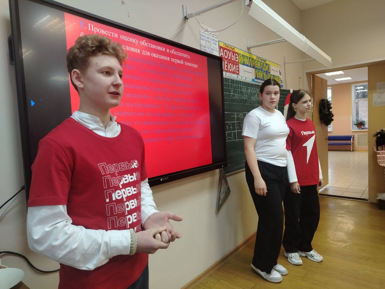 Ученики 8В класса провели познавательный урок по оказанию первой медицинской помощи для учеников 2Б класса