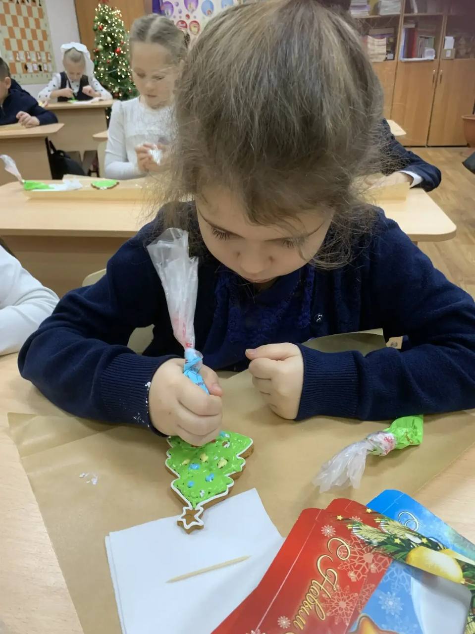 А чтобы задать праздничное настроение, мы устроили для ребят сладкий и творческий мастер-класс! Под чутким руководством они превратили пряники в настоящие произведения искусства: украшенные яркой глазурью елочки и ажурные снежинки.