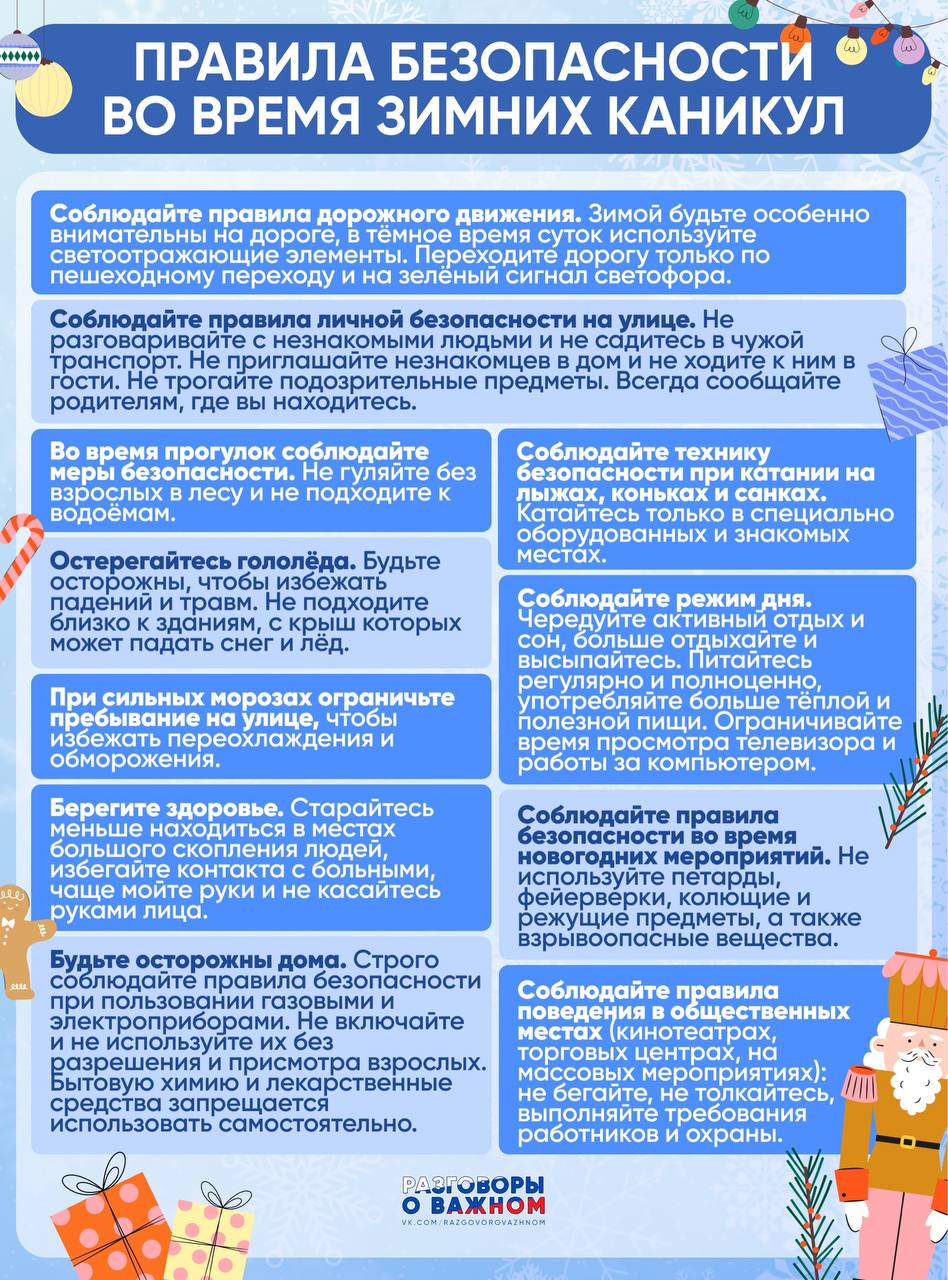 Берегите себя и оставайтесь в безопасности во время зимних каникул!