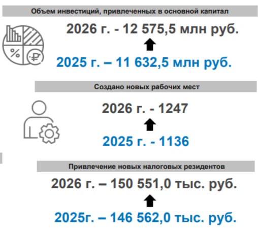 В 2025 году в области промышленности и предпринимательства оказано более 450 муниципальных услуг. Субъектам малого и среднего предпринимательства выдано субсидий на 3 миллиона рублей. Реализовано 7 инвестиционных проектов. В 2026 году планируется увеличить объем инвестиций, привлеченных в основной капитал, создать новые рабочие места, почти в полтора раза увеличить финансовую поддержку субъектов МСП и привлечь новых налоговых резидентов.