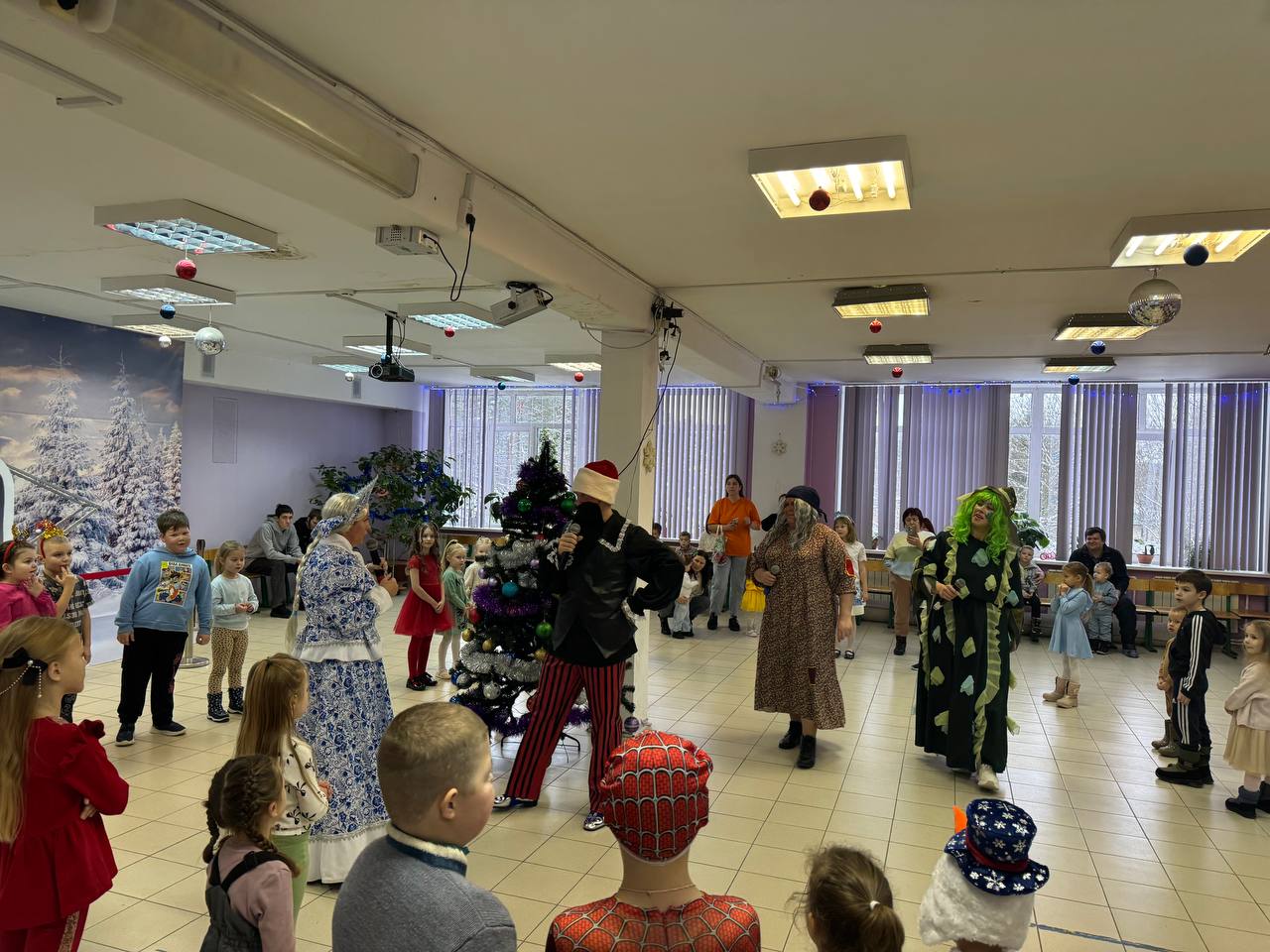 С самого начала представления Кощей, Лешиха, Баба Яга увлекли всех присутствующих в волшебный мир сказки. Баба Яга украла и заколдовала Деда мороза. Ребята со Снегурочкой справились с заданиями, Бабы Яги и как в любой сказке добро победило. Все вместе встретили Деда Мороза.