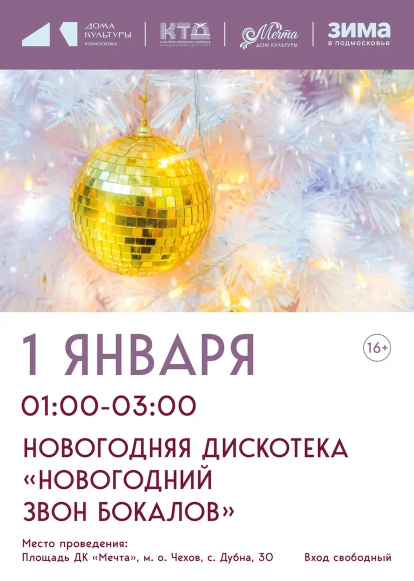 Приглашаем жителей и гостей муниципального округа Чехов на новогоднюю дискотеку от ДК «Мечта»