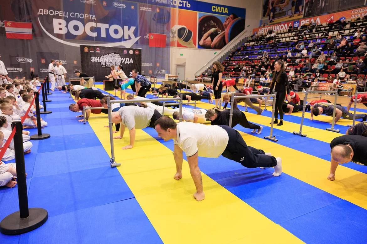 Сегодня во Дворце спорта «Восток» школа карате «Знамя Труда» собрала около 250 воспитанников.