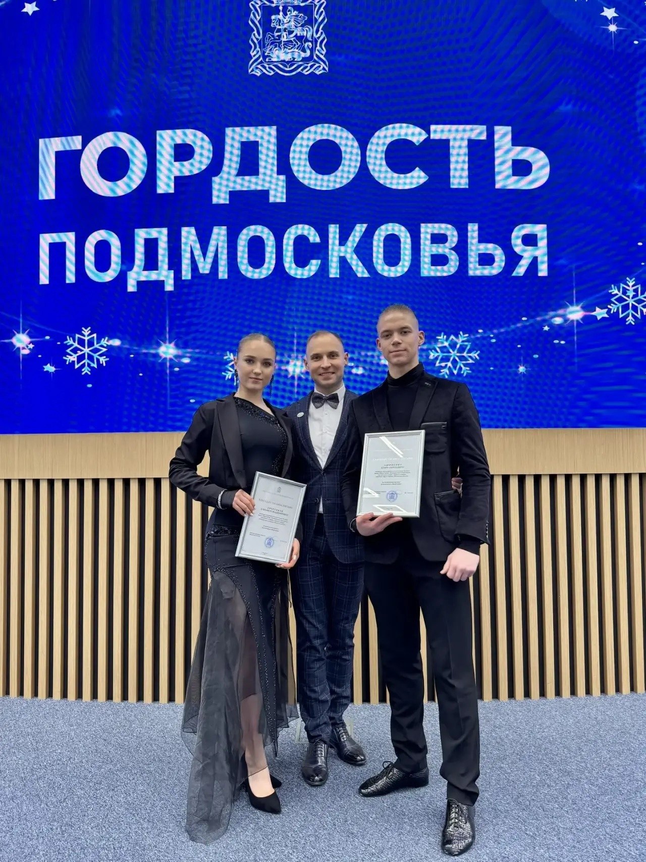 Танцоры из Ступино Егор Ашивкин и Елизавета Дворецкая получили благодарственные письма областного министерства культуры и туризма. Награждение прошло в Доме правительства региона в рамках мероприятия «Гордость Подмосковья».