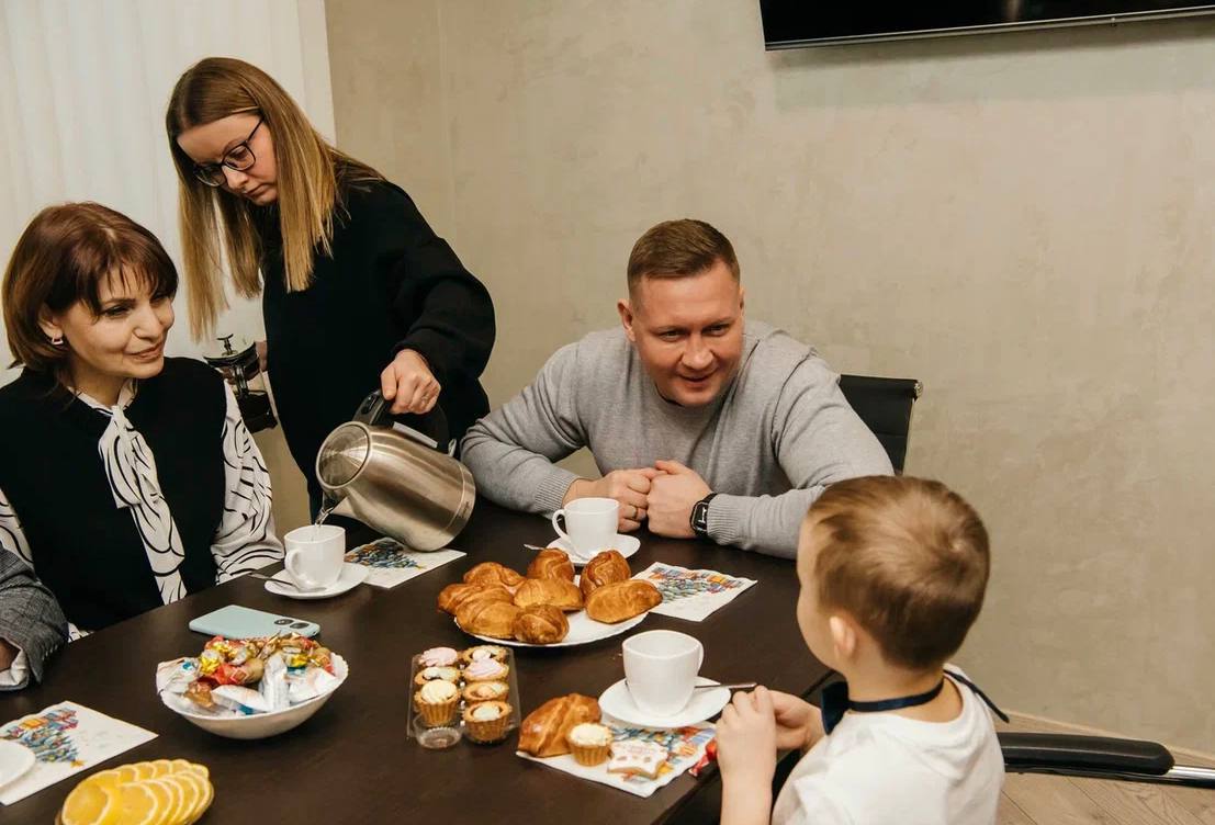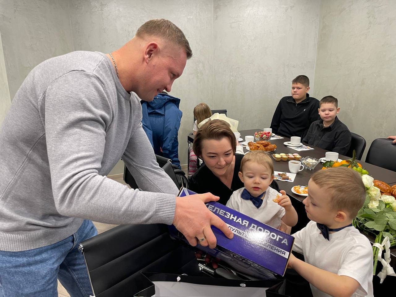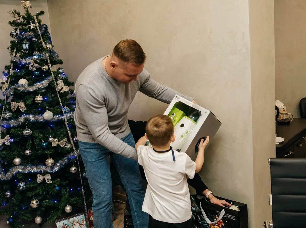 В рамках партийной акции «Ёлка желаний» мы смогли подарить немного праздничного настроения детям наших героев. Мне выпала честь исполнить заветные желания сыновей участника спецоперации Кирилла Титуха. Его мальчишки Даниил и Андрей мечтали о роботе и железной дороге. С радостью передал ребятам подарки от Деда Мороза.