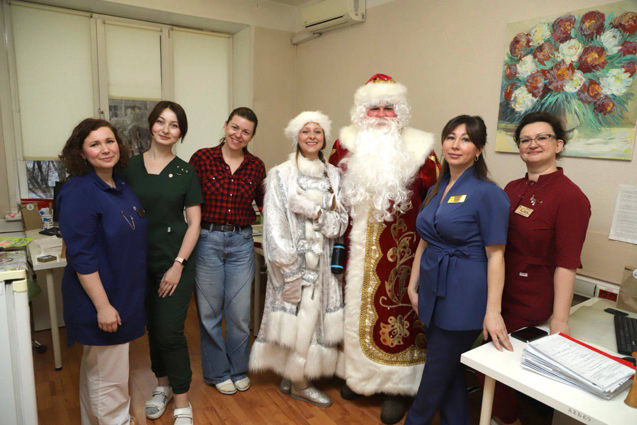 Не остались без внимания и те, кто дарит новую жизнь. Дед Мороз и Снегурочка нашли слова искренней благодарности для врачей, акушеров-гинекологов, неонатологов и медсестер центра, чей труд требует самоотдачи.
