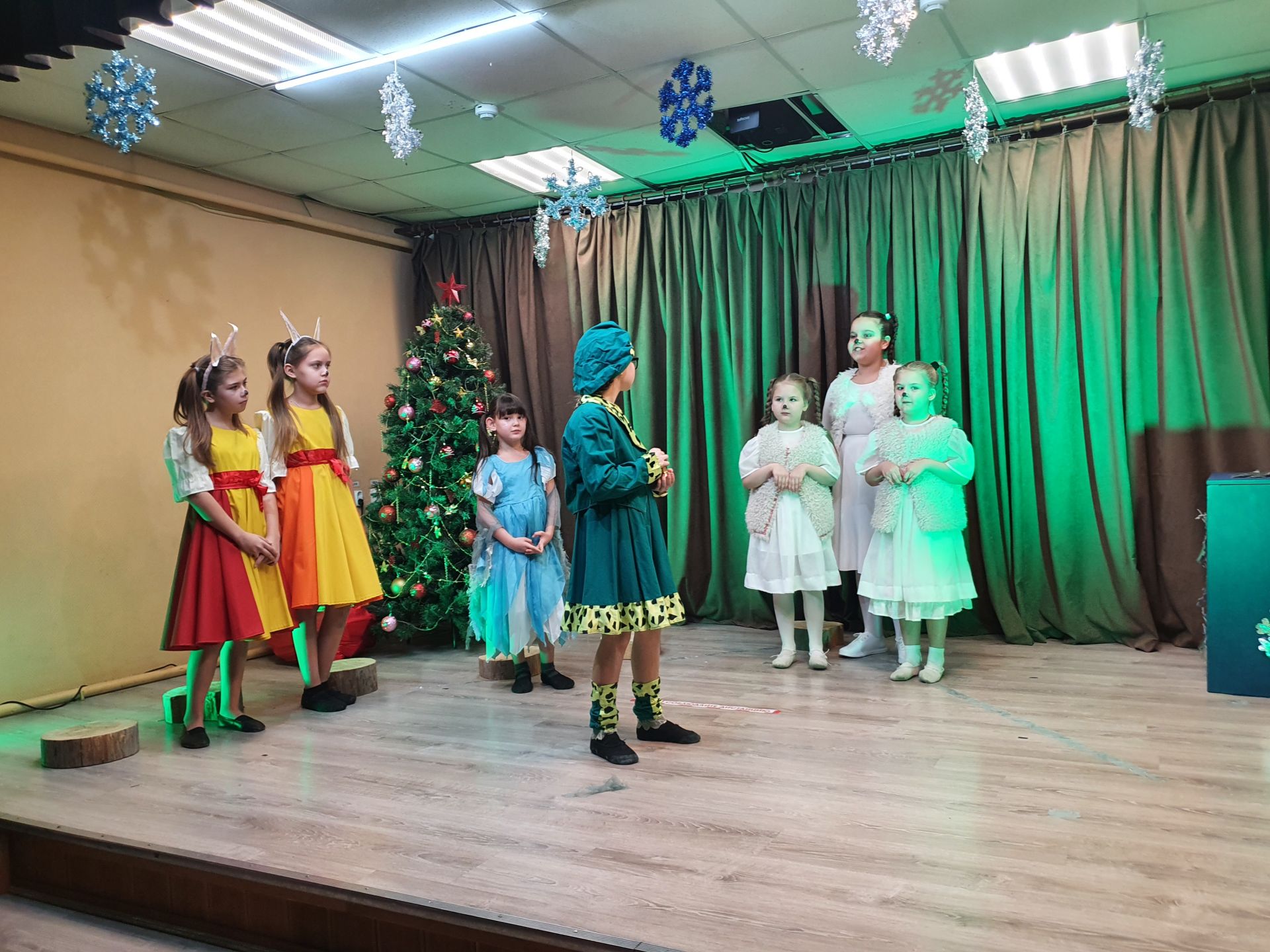 27 декабря, в Доме Культуры "Заря" прошел детский новогодний утренник «У леса на опушке». На площади дома культуры бабуси Ягуси помогли детям пройти испытания заколдованной змеи и встретить самого сказочного волшебника Деда Мороз и его помощницу Снегурочку. По пути на новогоднее представление они заблудились в лесу, им на помощь пришли зверята из лесной школы, участники театрального кружка «Контраст». В зале звучали зимние стихотворения, веселые песни и каждый получил заветный сладкий подарок.