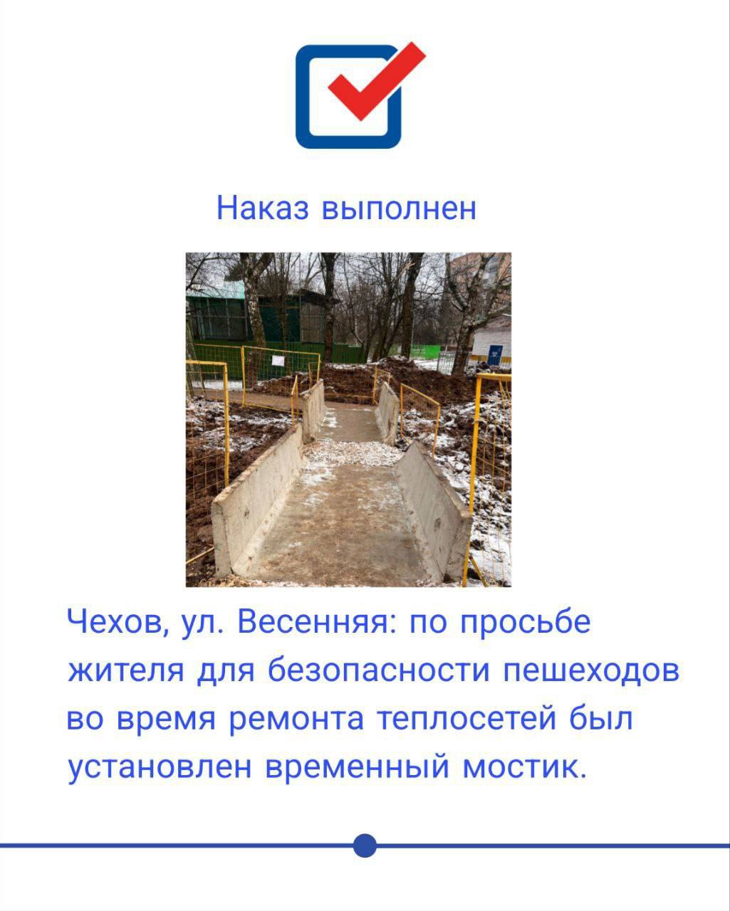 Чехов, ул. Весенняя: по просьбе жителя для безопасности пешеходов во время ремонта теплосетей был установлен временный мостик.