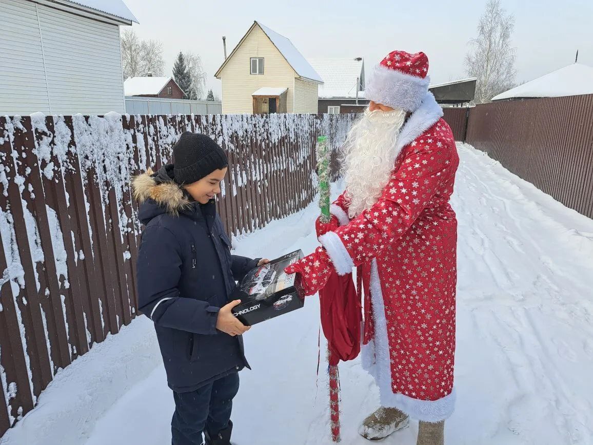 В этом году спасатели вручили подарок (конструктор лего) мальчику Валере и его брату и сестре, проживающим в д. Ходаево.