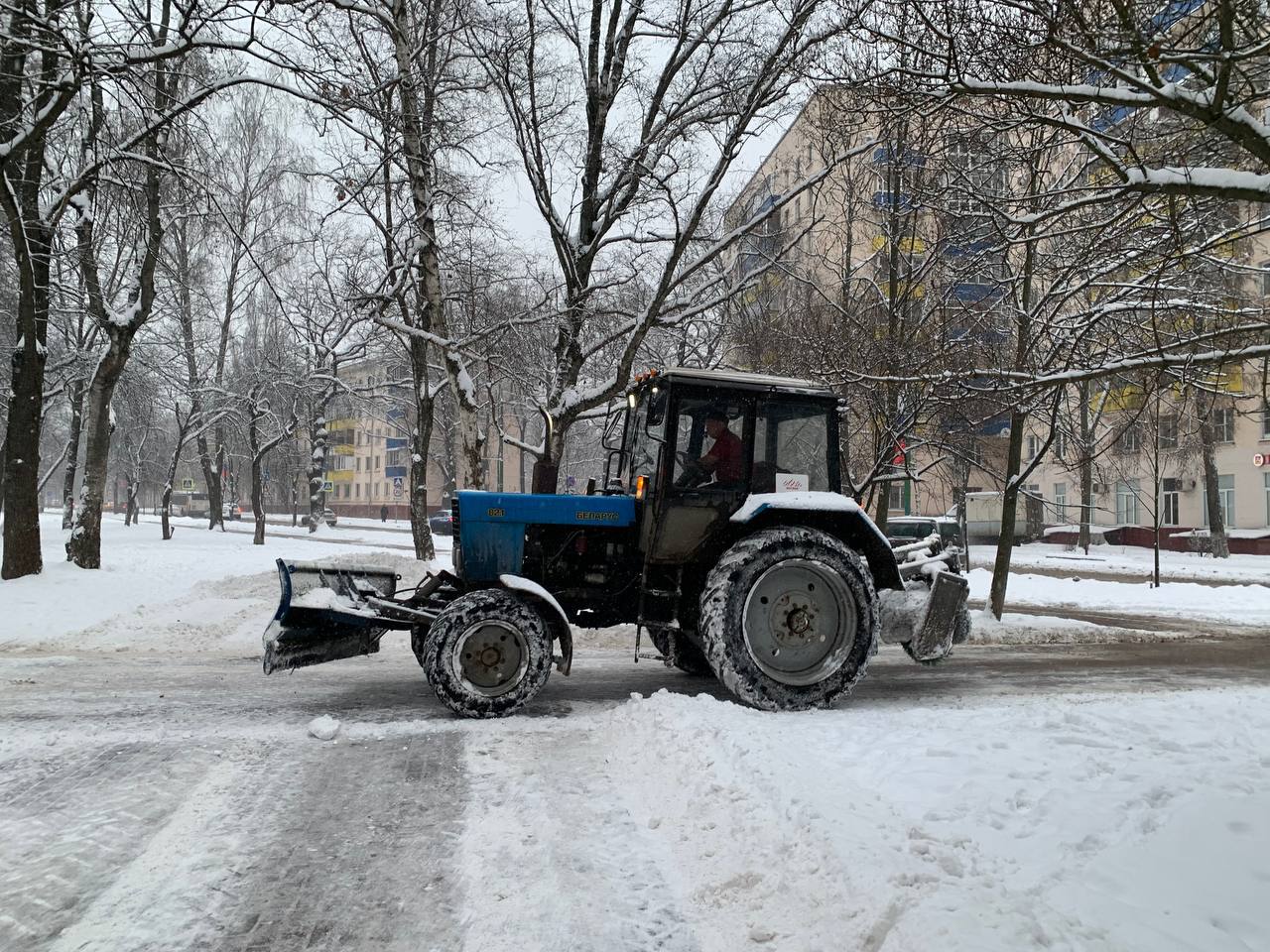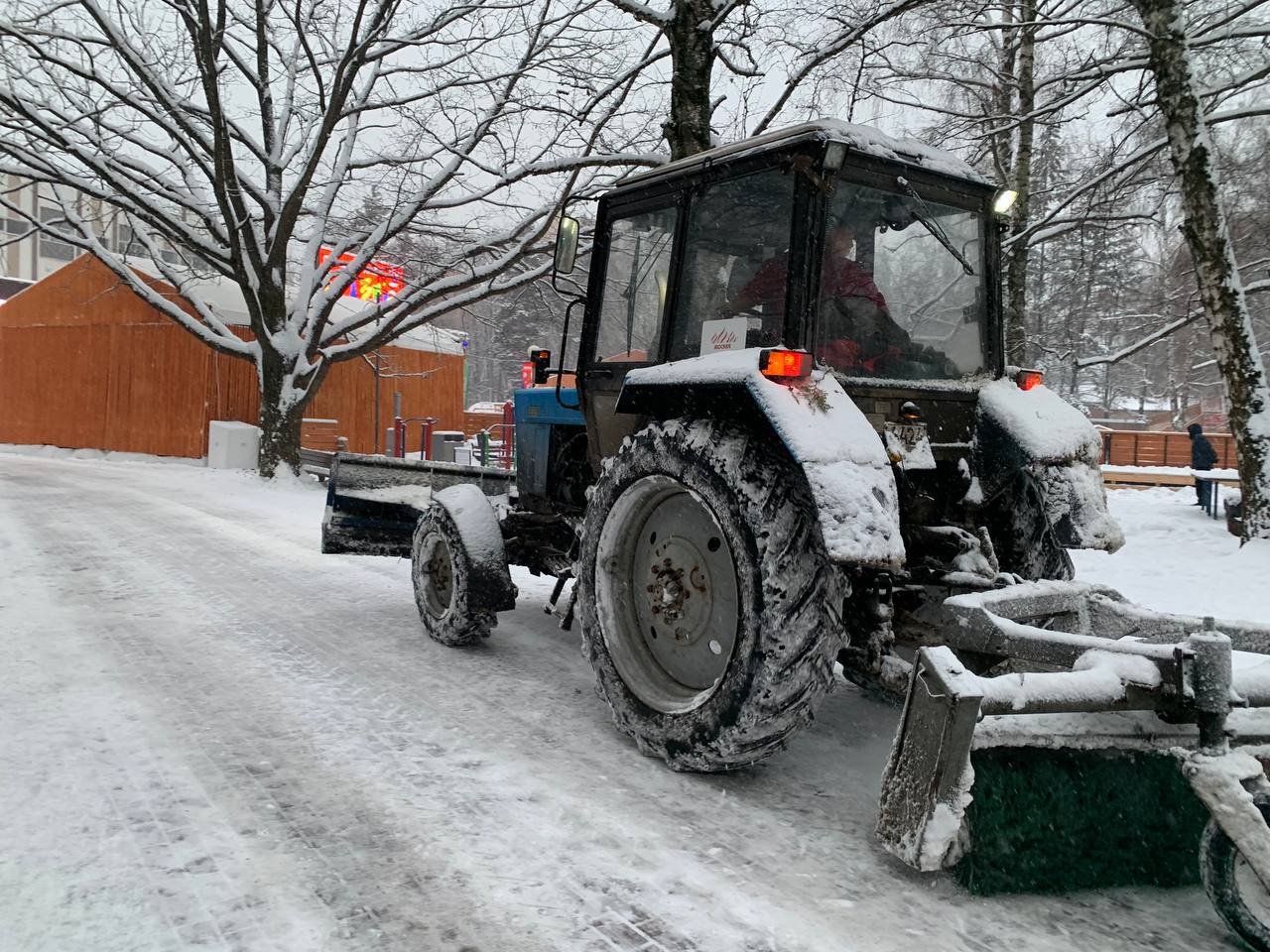На улицах, во дворах и общественных пространствах города задействованы более 300 дворников и свыше 50 единиц специализированной техники — тракторы, комбинированные машины и мини-погрузчики.