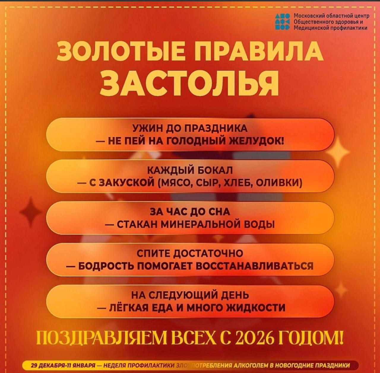 Несколько советов, как выйти здоровым из новогоднего марафона, подготовил Московский областной центр общественного здоровья и медицинской профилактики.