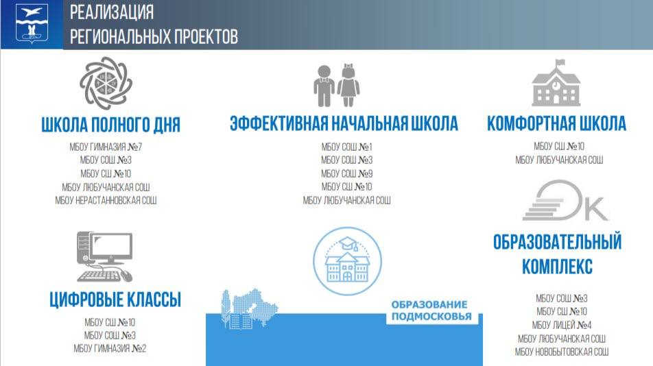 В муниципалитете формируется кадетское движение – в школах открыто 11 кадетских классов в 6 образовательных учреждениях. В рамках дополнительного образования работает 13 центров «Точка роста». В 11 образовательных учреждениях для ранней профориентации учащихся созданы предпрофильные классы.