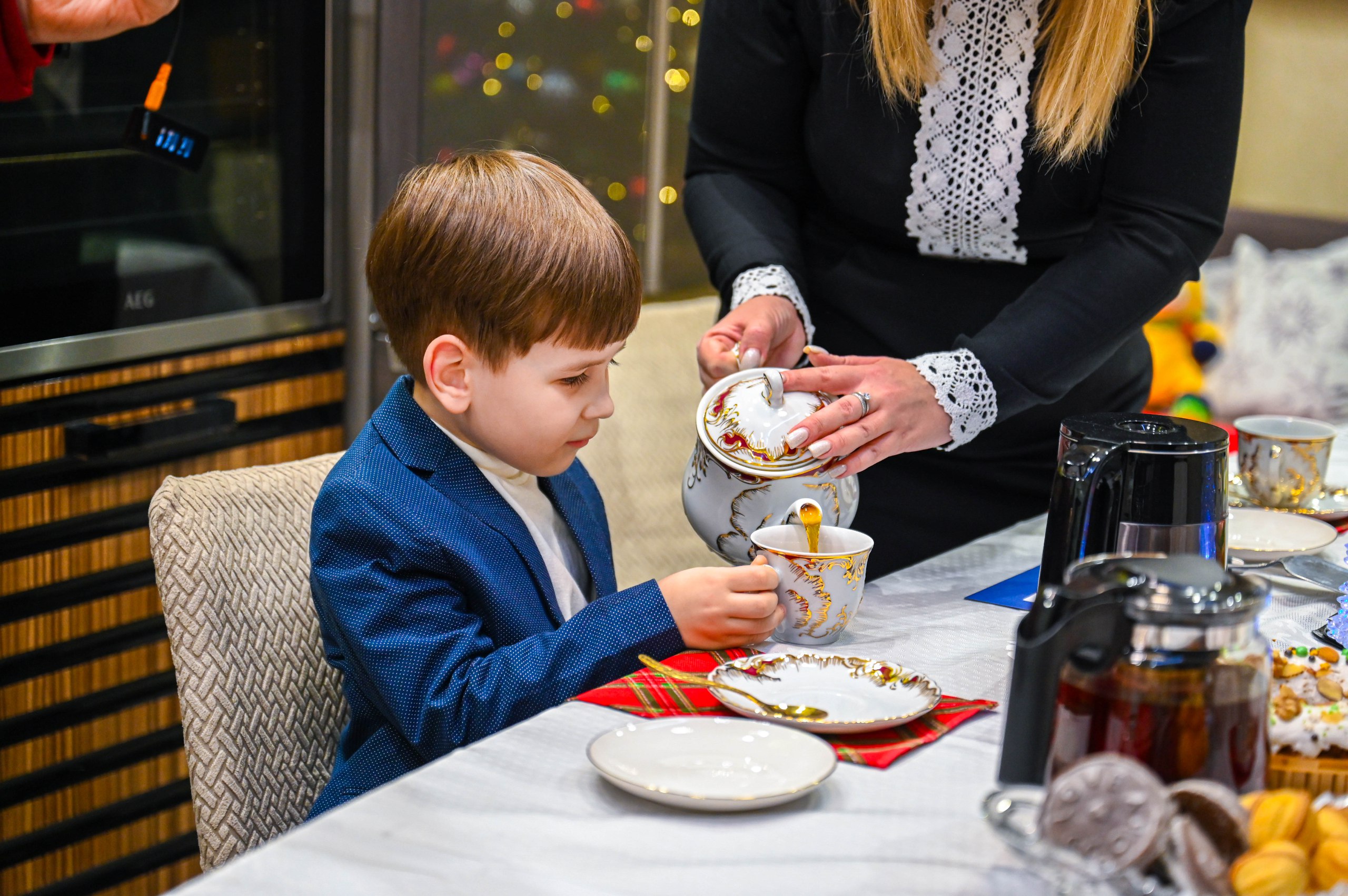 Братьям подарили новые коньки для зимних активностей, а также праздничные сладкие подарки. За тёплой беседой с чаем обсудили, как ребята помогают маме, какие оценки получили в школе и чем планируют заниматься в новом году.