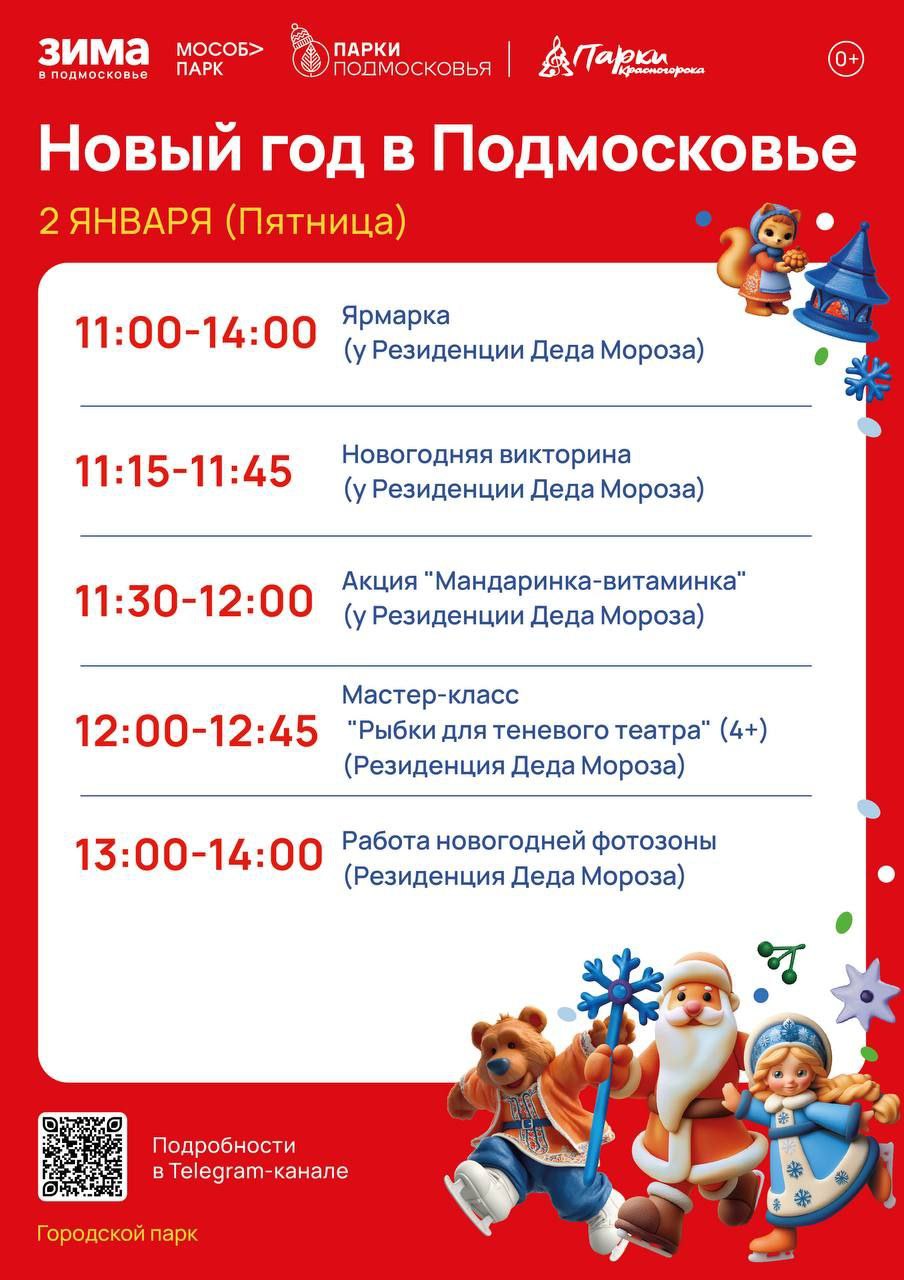 Сегодня, 2 января, жителей и гостей округа ждет мероприятие «Новый год в Подмосковье»!