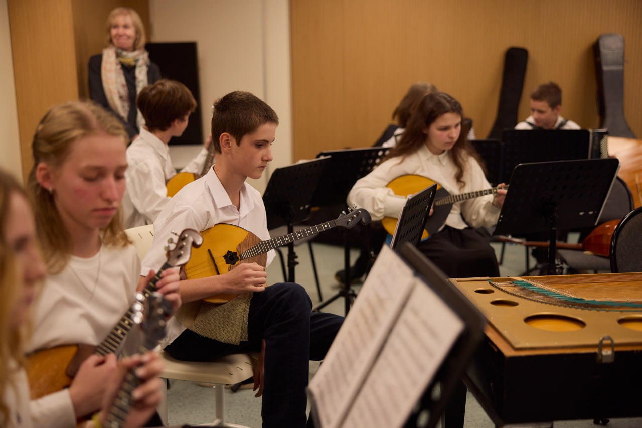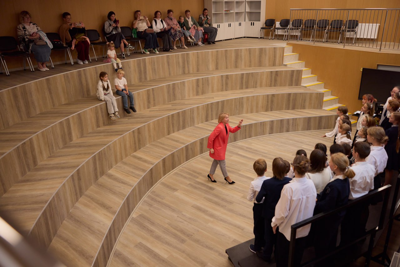 38 учебных классов, залы для ансамблей и ритмики, два актовых зала