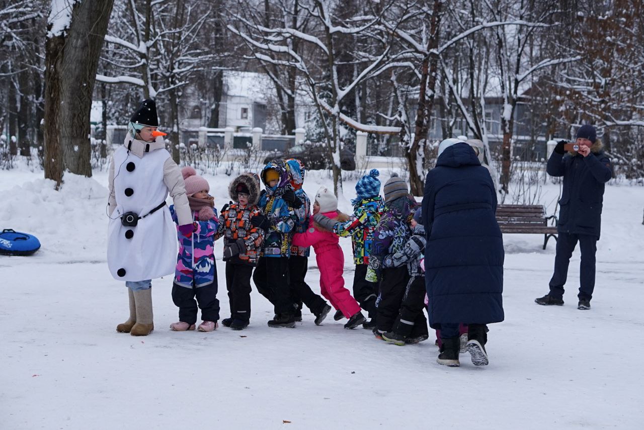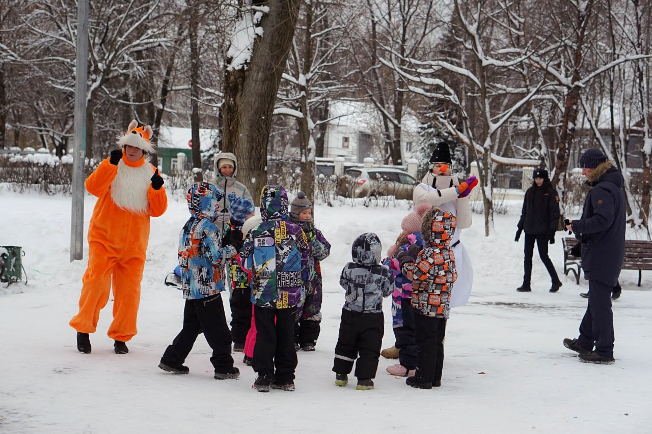 В этот морозный день в гости к малышам и их родителям пожаловали настоящие герои из волшебного леса — Снеговик-Почтовик и хитрая красавица Лиса Патрикеевна.