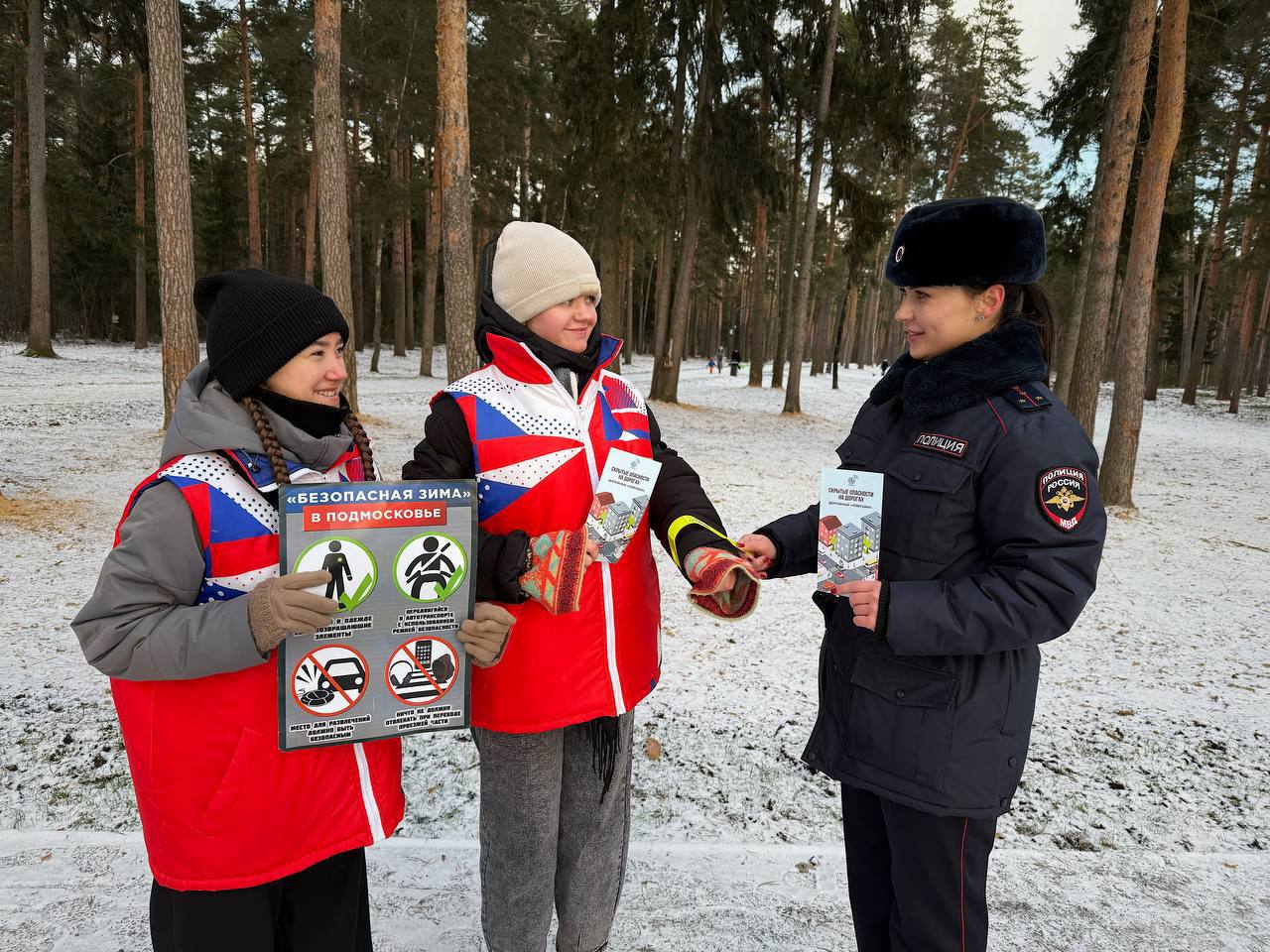 Зимние забавы под контролем: в Подмосковье автоинспекторы провели акцию по безопасности пешеходов