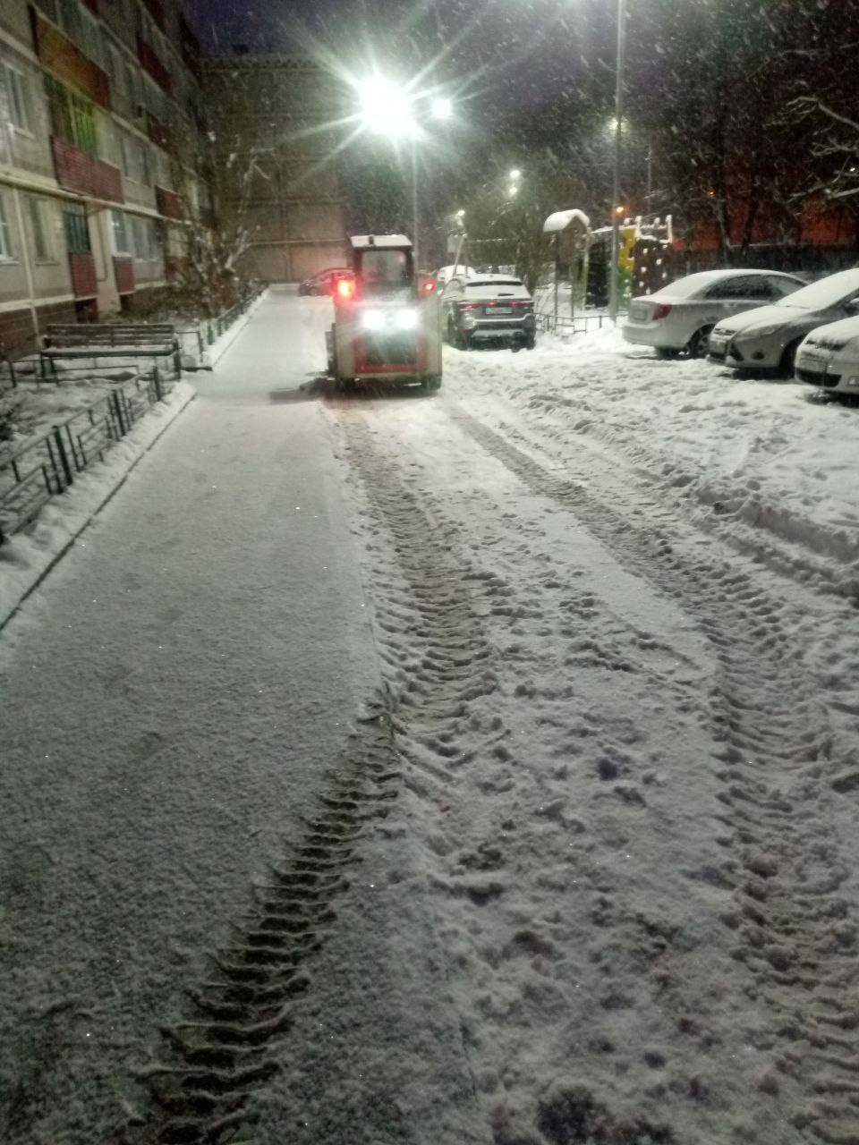 С 3 часов утра на улицы и дороги вышло более 60 единиц муниципальной техники. С 7 утра дворники производят очистку и обработк, общественных территорий и дворовых пространств от выпавшего снега.