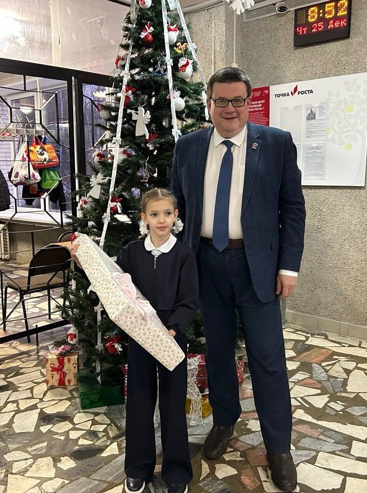 Ученица 2 класса Гимназии Агата загадала не просто игрушку, а спортивный инвентарь — баланс-борд. Это отличный выбор для развития координации, ловкости и силы! С удовольствием выполнил поручение Деда Мороза и вручил Агате заказанный подарок.