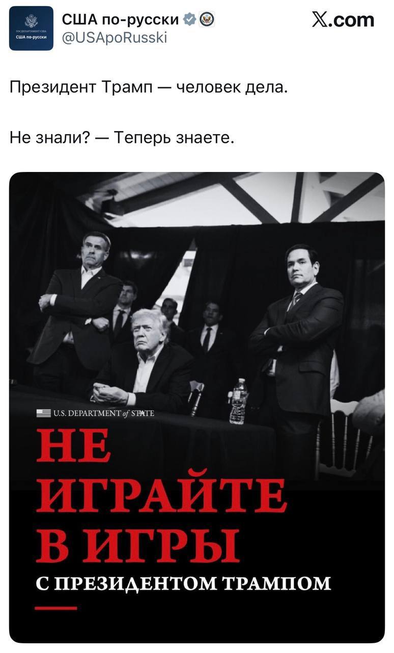 Госдеп США опубликовал в своих русскоязычных аккаунтах в Х предостережение в виде постера.