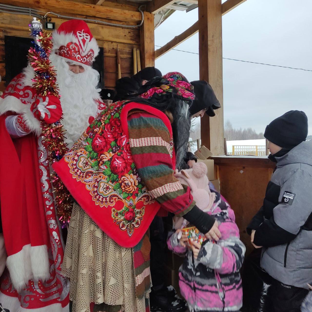 Ребят поздравили Дед Мороз, Снегурочка, Баба Яга и Кощей. К мероприятию присоединились представители общины «Северный человек» из Старой Купавны, которые привезли подарки для детей.