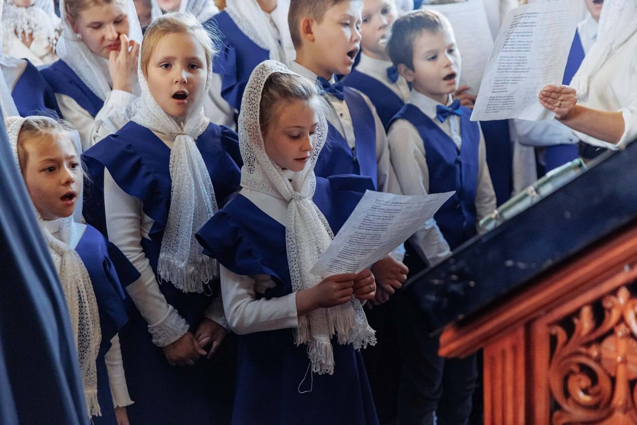 В хоре заняты 70 мальчиков и девочек в возрасте от 5 до 15 лет, знакомые с верой с самого нежного возраста. В числе хористов – трое детей самого отца Иоанна, у которого в семье 6 детей.