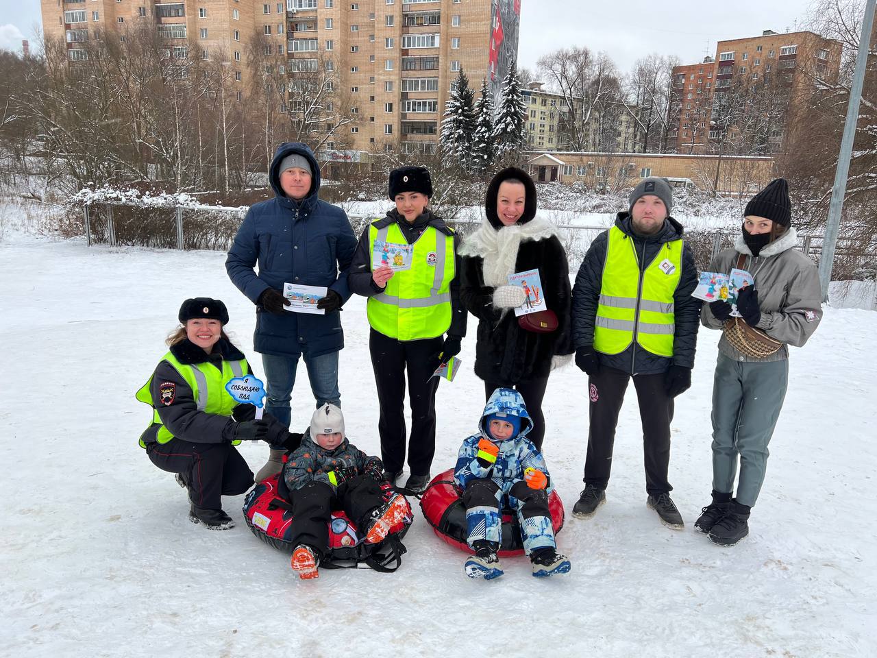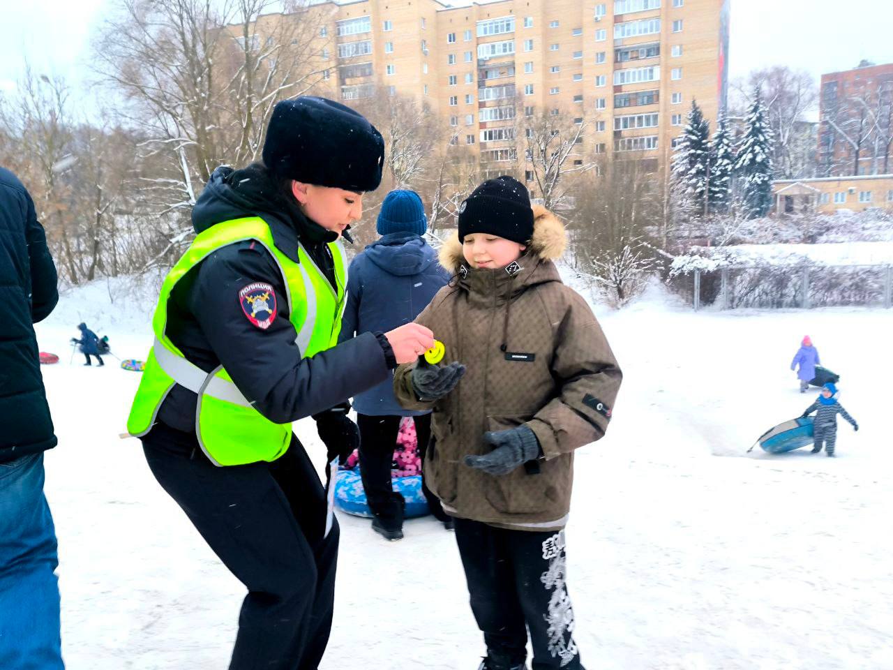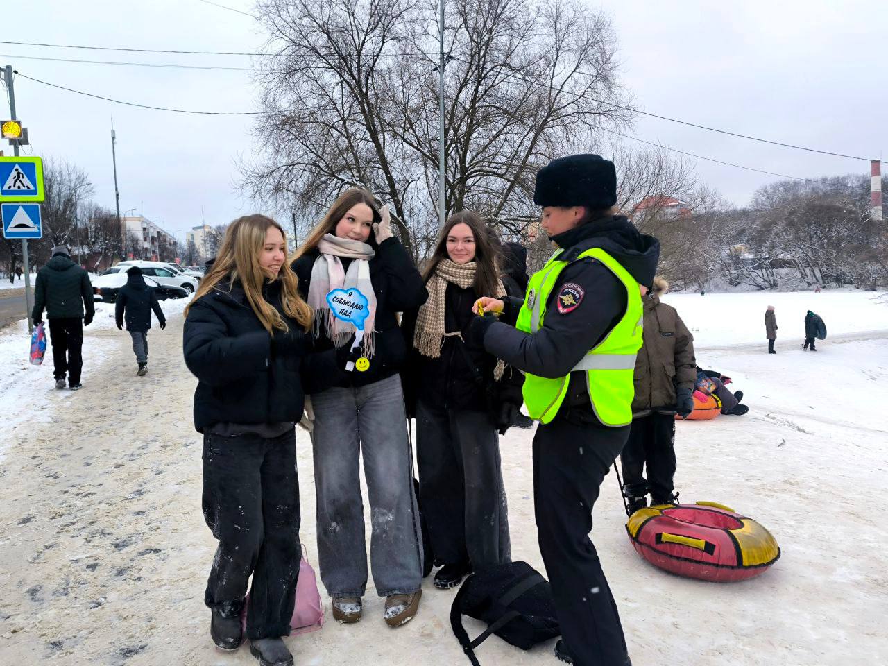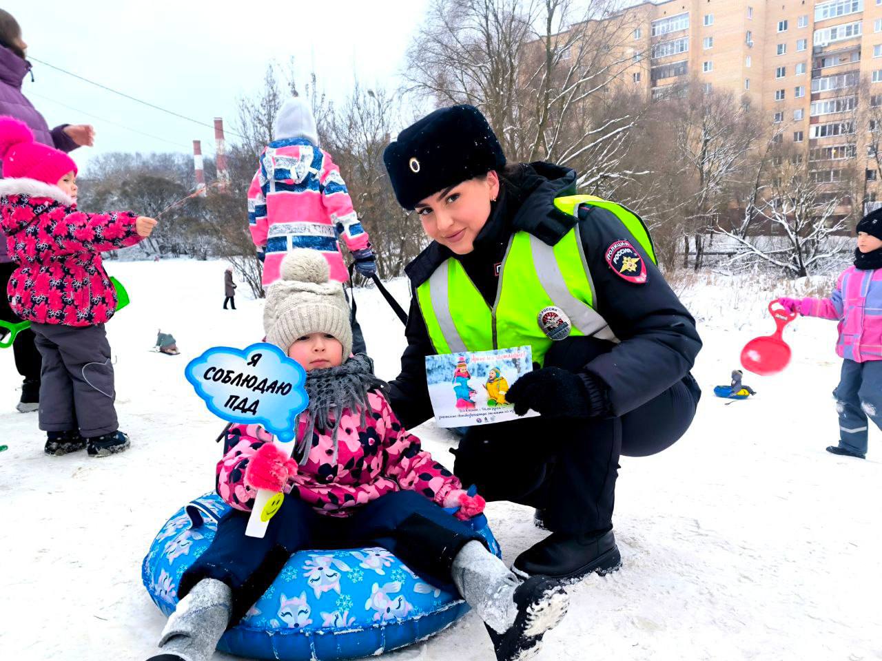 Юным пешеходам и родителям напомнили, что кататься на санках и ватрушках необходимо только на оборудованных местах, не выходящих на проезжую часть, а при переходе дороги необходимо быть внимательными и осторожными.