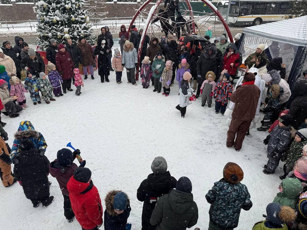 В гости пришли волшебники зимы — Снегурочка и Мишка. Дети водили хороводы, рассказывали стихи, получали подарки и загадывали заветные желания. Всех гостей ждал согревающий ароматный чай и сладкие угощения.